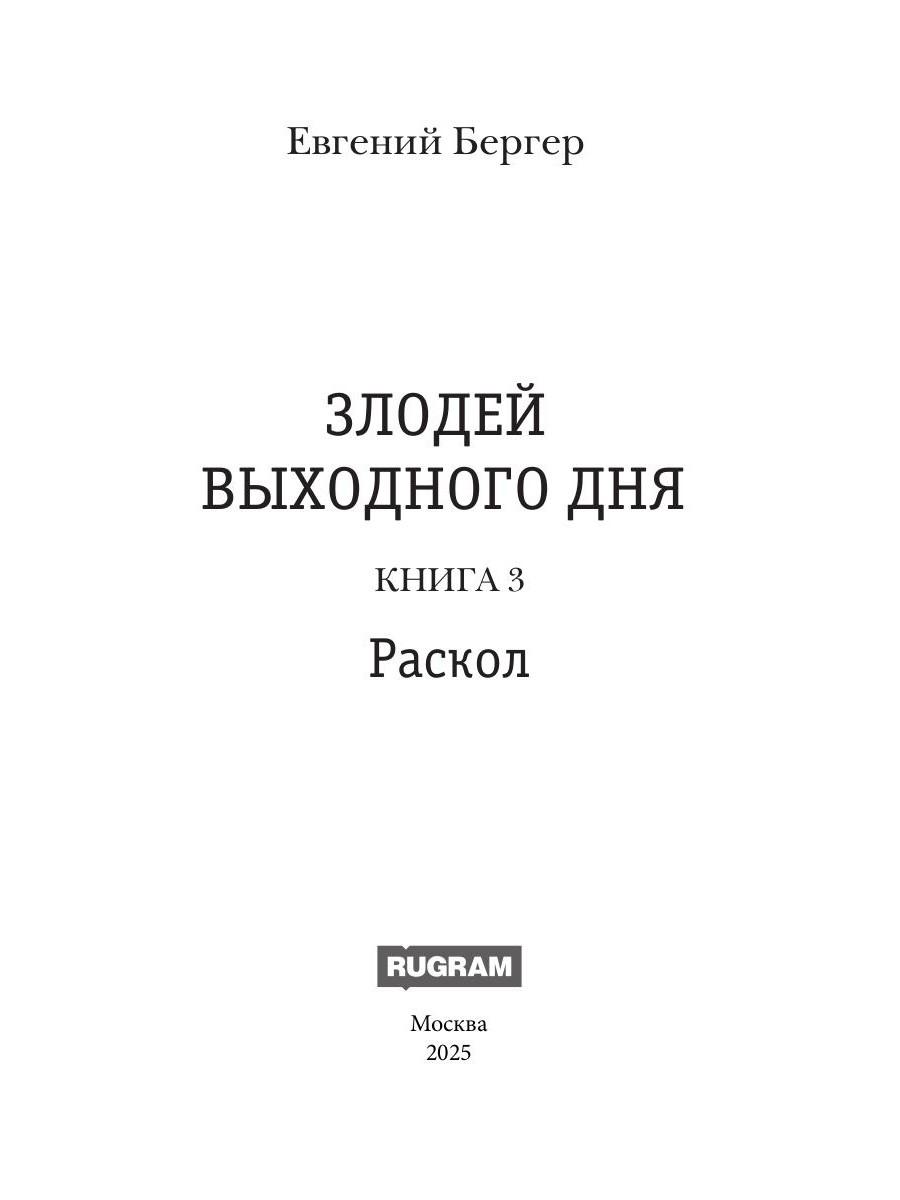 Аннотация: Злодей выходного дня. Кн. 3. Раскол