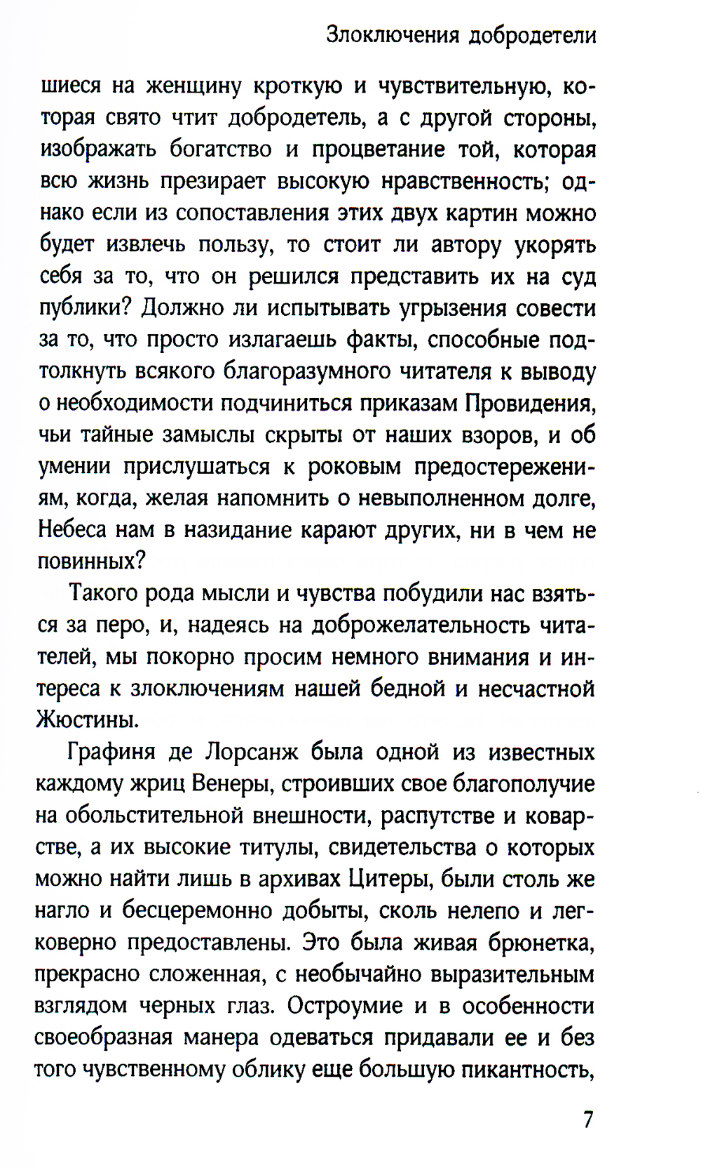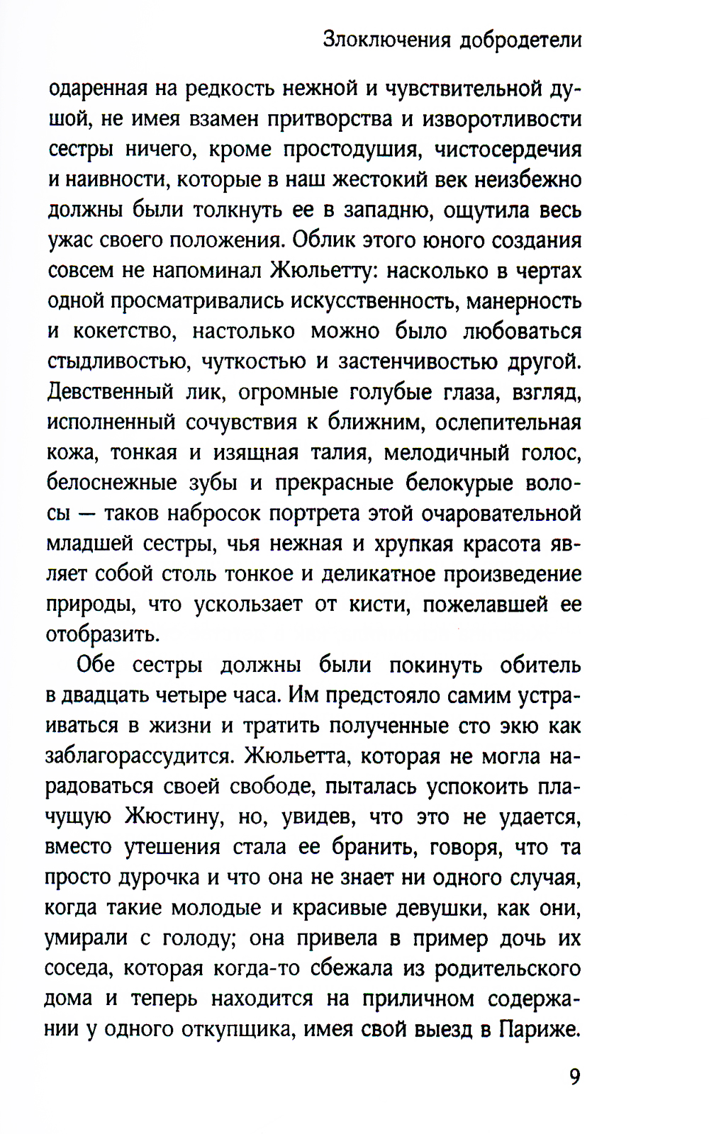 Для Маркиза де Сада (1740-1814) не существовало понятий "нельзя" и "неправильно". Всю свою жизнь он являлся сторонником учения, где разрешено все, что душе угодно, все человеческие пороки, которые возникают в сознании по щелчку пальцев. Удовольствия - вот ради чего стоит жить. Герои его книг такого же порядка и не хотят быть другими - им это не нужно. В такую среду, где все "ужасно черно", попадает героиня "Злоключений добродетели". Она пытается жить по законам морали, но все ее действия приносят одно зло, и остается только гадать, сумеет ли она противостоять всем искушениям и остаться добродетелью, какой хочет быть.| Издательство | Омега-Л |