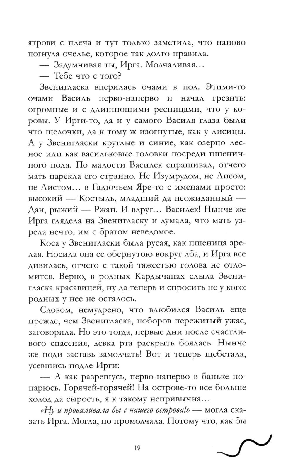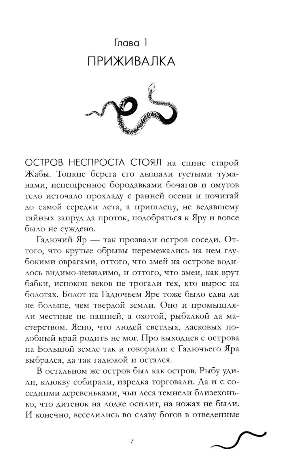 Говорят, что рожден он самим туманом. Что мертвый глаз его видит Безлюдье. Что ходит он по свету неприкаянный и во всяком селе, где заночует, скоро сбивают похоронные короба. Люди нарекли его Змееловом. Девки его боятся - страсть! Все боятся, а одна не дрогнет. Что ей Змеелов? Ей весь Гадючий остров не страшен!
