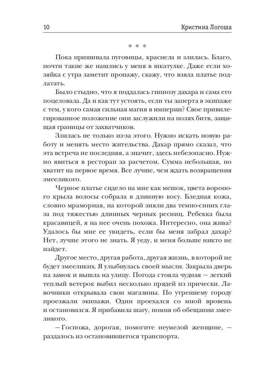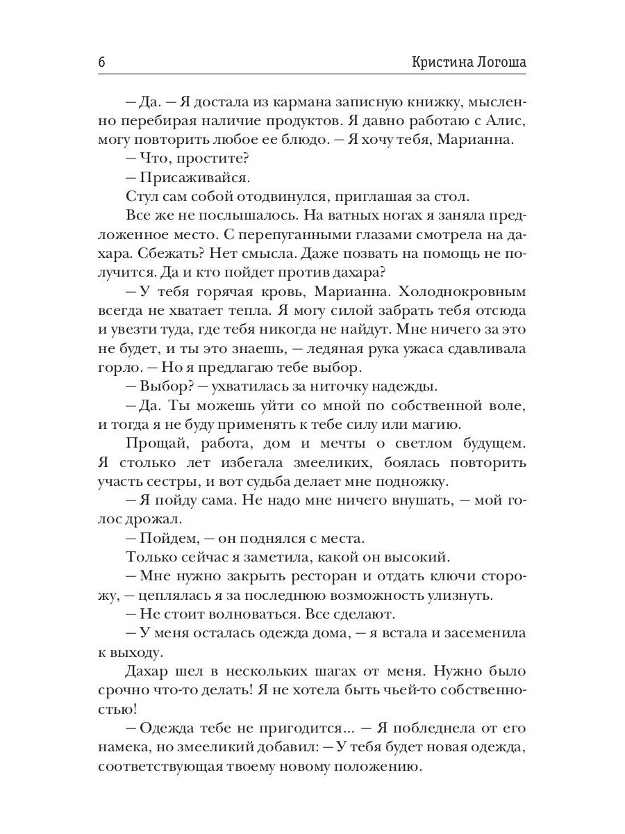 Змееликие имеют право на твою невинность, свободу и жизнь. Сотни девушек похищены ими и заточены в Хрустальном городе. Я могла стать одной из них, но мою руку обожгла печать змеицы. Редкий знак, который возводит его обладательниц в разряд святынь. Теперь моя жизнь состоит из вожделеющих взглядов змееликих, интриг домов куртизанок и ревности нагайн…| Издательство | Т8 RUGRAM |