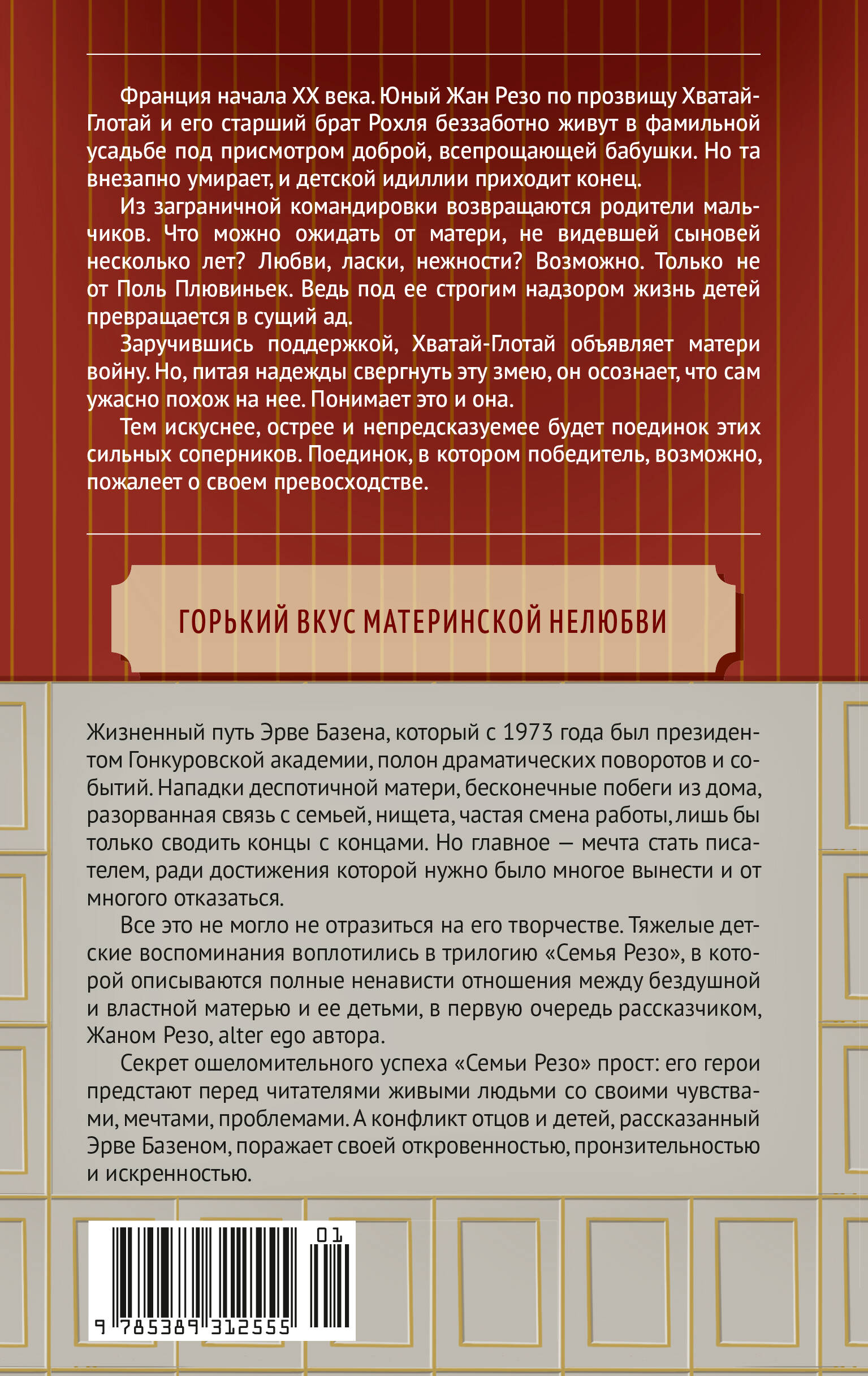 Пронзительная, честная книга о полных ненависти отношениях между бездушной и властной матерью и ее детьми от президента Гонкуровской академии, известного французского писателя Эрве Базена. Франция начала XX века. Юный Жан Резо по прозвищу Хватай-Глотай и его старший брат Рохля беззаботно живут в фамильной усадьбе под присмотром доброй всепрощающей бабушки. Но та внезапно умирает, и детской идиллии приходит конец. Из заграничной командировки возвращаются родители мальчиков. Что можно ожидать от матери, не видевшей сыновей несколько лет? Любви, ласки, нежности? Возможно. Только не от Поль Плювиньек. Ведь под ее строгим надзором жизнь детей превращается в сущий ад. Заручившись поддержкой, Хватай-Глотай объявляет матери войну. Но, питая надежды свергнуть эту змею, он осознает, что сам ужасно похож на нее. Понимает это и она. Тем искуснее, острее и непредсказуемее будет поединок этих сильных соперников. Поединок, в котором победитель, возможно, пожалеет о своем превосходстве.| Издательство | Издательство АЗБУКА ООО |