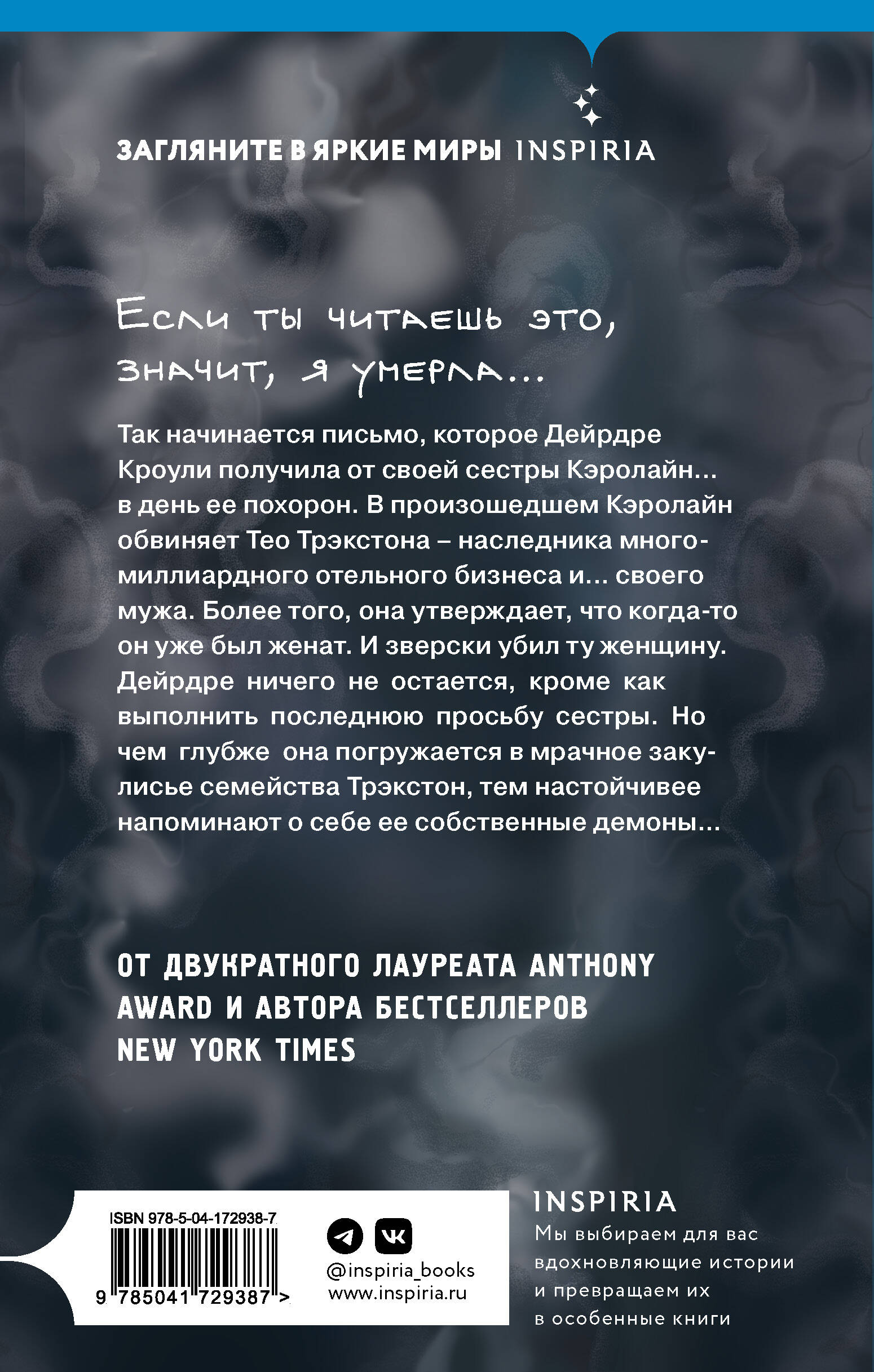 ОТ ДВУХКРАТНОГО ЛАУРЕАТА ANTHONY AWARD И АВТОРА БЕСТСЕЛЛЕРОВ NEW YORK TIMES. Если ты читаешь это, значит, я умерла… Так начиналось письмо, которое Дейрдре Кроули получает от своей сестры Кэролайн… в день ее похорон. В произошедшем Кэролайн обвиняет Тео Трэкстона - наследника многомиллиардного отельного бизнеса и… своего мужа. Более того: она утверждает, что когда-то он уже был женат. И зверски убил ту женщину. Дейрдре ничего не остается, кроме как выполнить последнюю просьбу сестры. Но чем глубже она погружается в мрачное закулисье семейства Трэкстон, тем настойчивее напоминают о себе ее собственные демоны… Закрученная, захватывающая, леденящая кровь история от автора бестселлеров New York Times для поклонников Таны Френч и Лизы Гарднер. __________________________________________________________________________ «Хилари Дэвидсон предлагает читателю сыграть в игру. С извилистым сюжетом, достойным Агаты Кристи, сложными психологическими нитями и глубокими, темными семейными тайнами, эта история - переворот в жанре!» - Венди Уокер «Хилари Дэвидсон - мастер сюжетных поворотов!» - Тесс Герритсен «Триллер, который необходимо прочитать». - New York Journal of Books| Издательство | ООО "Издательство "Эксмо" |