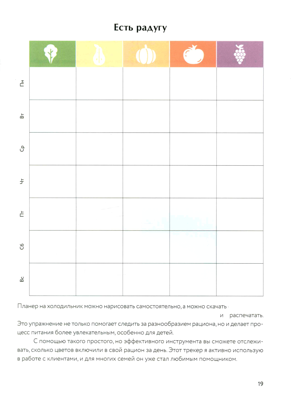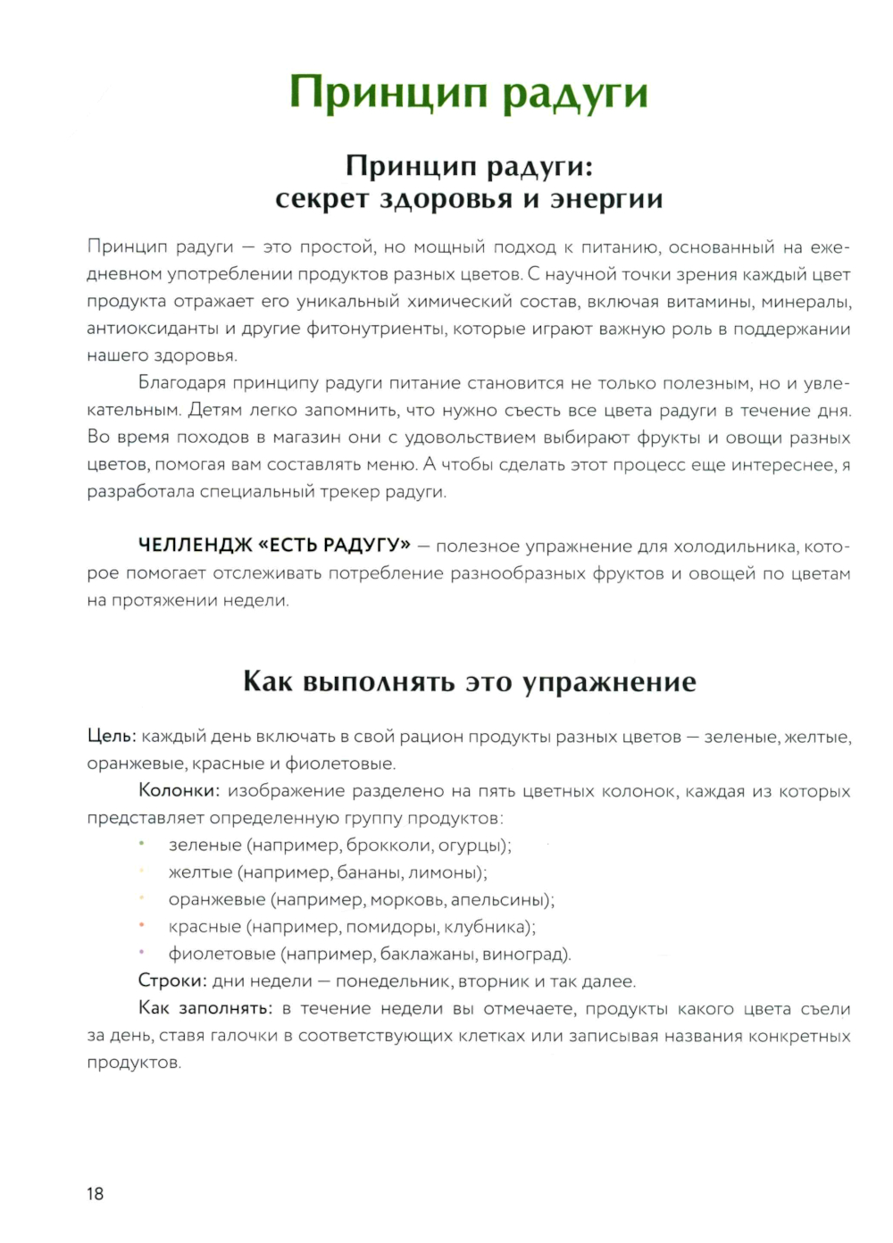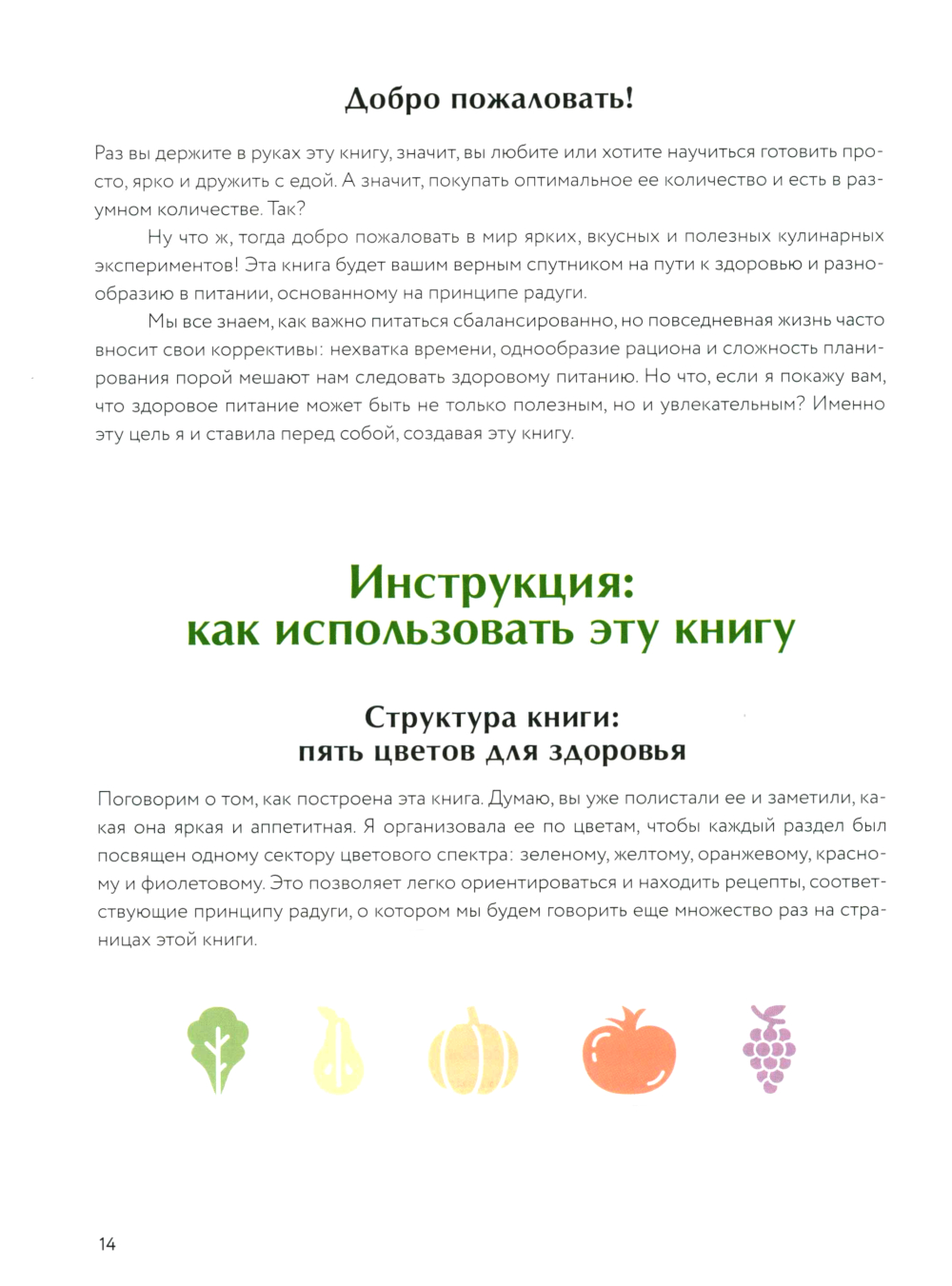 Яркий гид по здоровому питанию от Марии Кардаковой - ученого и популяризатора ЗОЖ. Здесь все, что поможет сделать рацион разнообразным и полезным: фотографии блюд, 100+ «цветных» рецептов, тест-анализ привычек, трекер, меню, конструктор салатов. В книге пять «цветных» разделов: зеленый, желтый, оранжевый, красный и фиолетовый - по принципу радуги. Каждый цвет связан с важными темами здорового питания: иммунитет и энергия, работа сердца и мозга, красота и долголетие. Мария Кардакова дает научные комментарии, приводит исследования и много полезных советов, которые помогут чувствовать себя лучше каждый день. Автор опирается на доказательную науку, которая, как и блюда, подается легко и занимательно. А еще - показывает, как заботиться о себе и близких без стресса, сложного планирования и сверхусилий. Вместо строгих схем и запретов - кулинарные эксперименты и новые вкусовые впечатления. Рецепты - из доступных и сезонных продуктов: салат со сливами, томатный тарт, овсяные маффины с грушей... И главное, их можно приготовить «одной рукой» и адаптировать под свои предпочтения и ритм жизни.