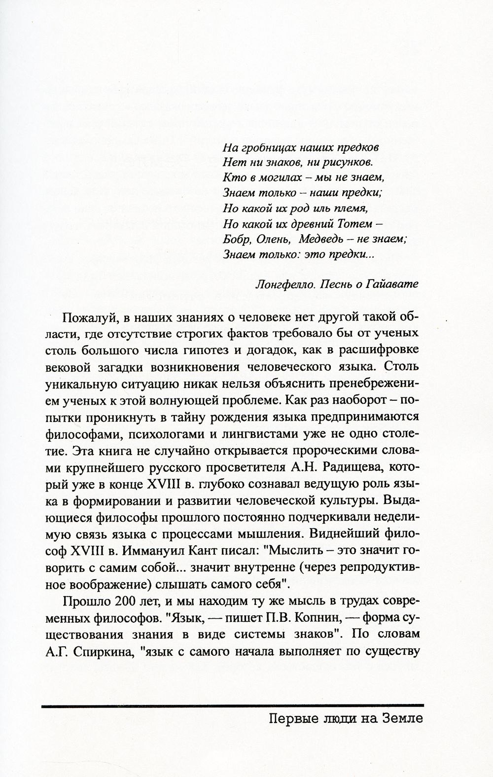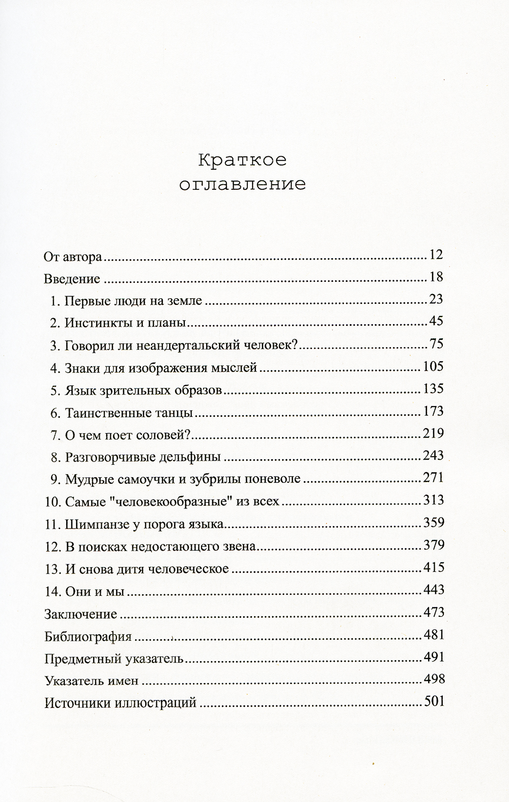 В настоящей книге с позиции биолога рассматриваются некоторые наиболее существенные представления о языке человека, без знания которых невозможно понять его принципиальное отличие от «языков» животных. Обсуждаются факты и гипотезы относительно возможных путей становления языка в эволюции человека. Речь в книге идет также о многообразных связях языкового поведения людей с особенностями нашего мозга, о всевозможных способах коммуникации, созданных человеком на базе естественного разговорного языка (языки свистов и жестовые языки, флажные коды, письменность). Часть книги посвящена описанию способов коммуникации пчел, птиц, дельфинов и человекообразных обезьян. В заключительных главах описаны попытки ученых научить животных (попугаев, дельфинов, тюленей и шимпанзе) общаться с людьми с помощью так называемых языков-посредников. Книга будет полезна не только специалистам - психологам, лингвистам, этологам, антропологам, зоологам, но и широкому кругу читателей, интересующихся проблемами происхождения и развития языка.