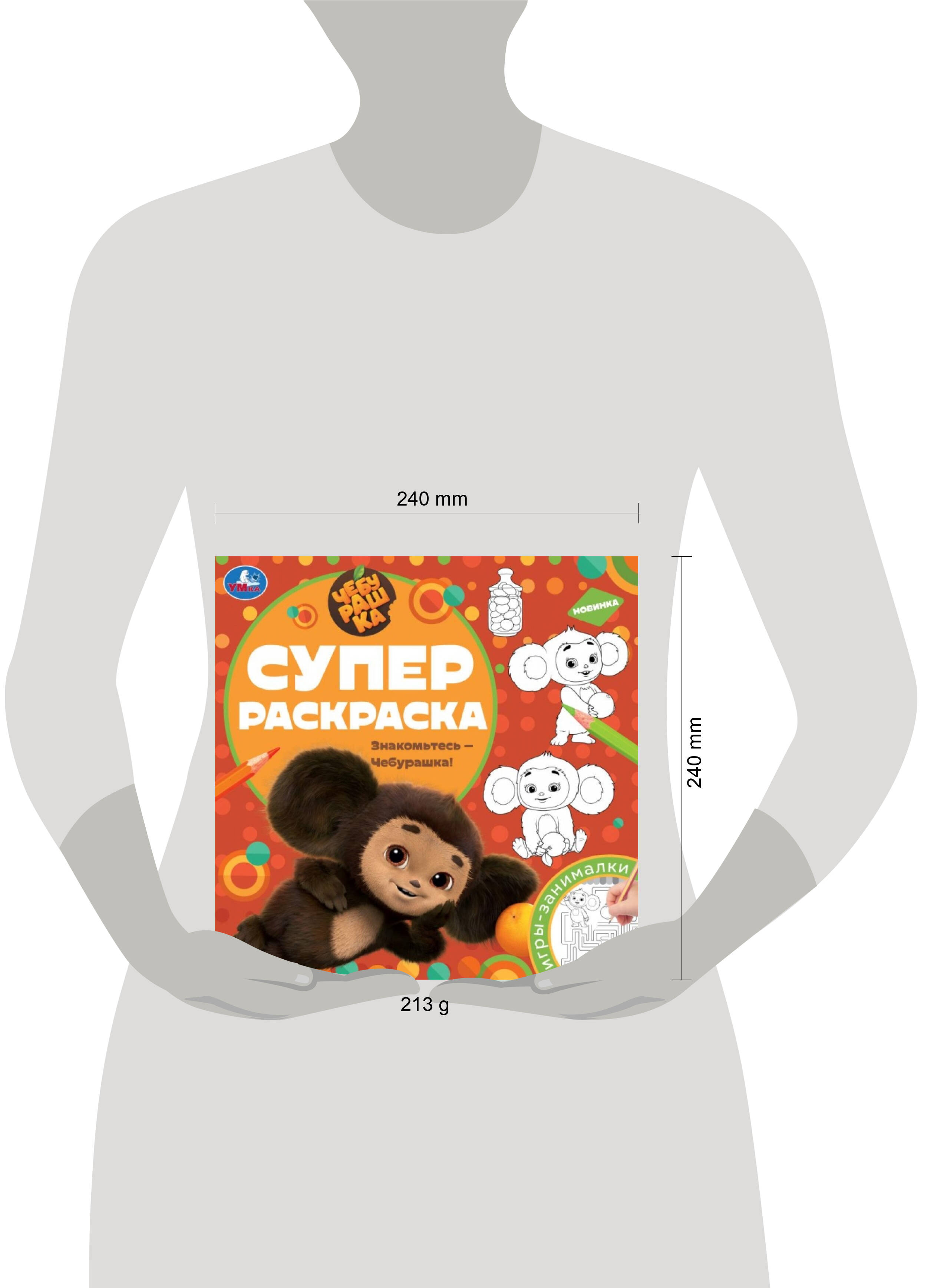 Аннотация: Знакомьтесь – Чебурашка! Суперраскраска. 240х240 мм. Скрепка. 64 стр. Умка в кор.15шт