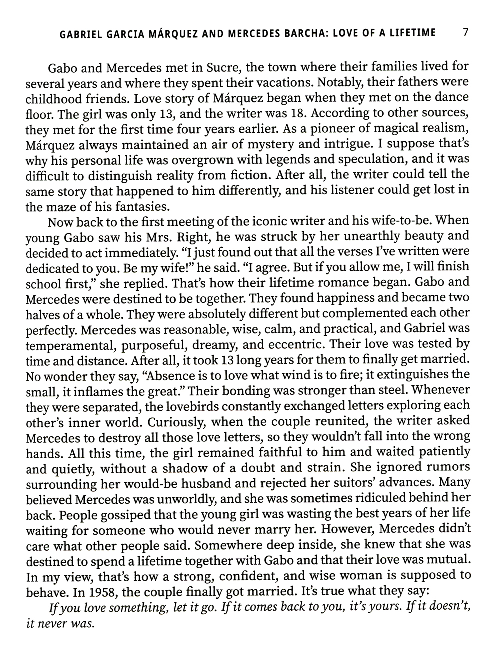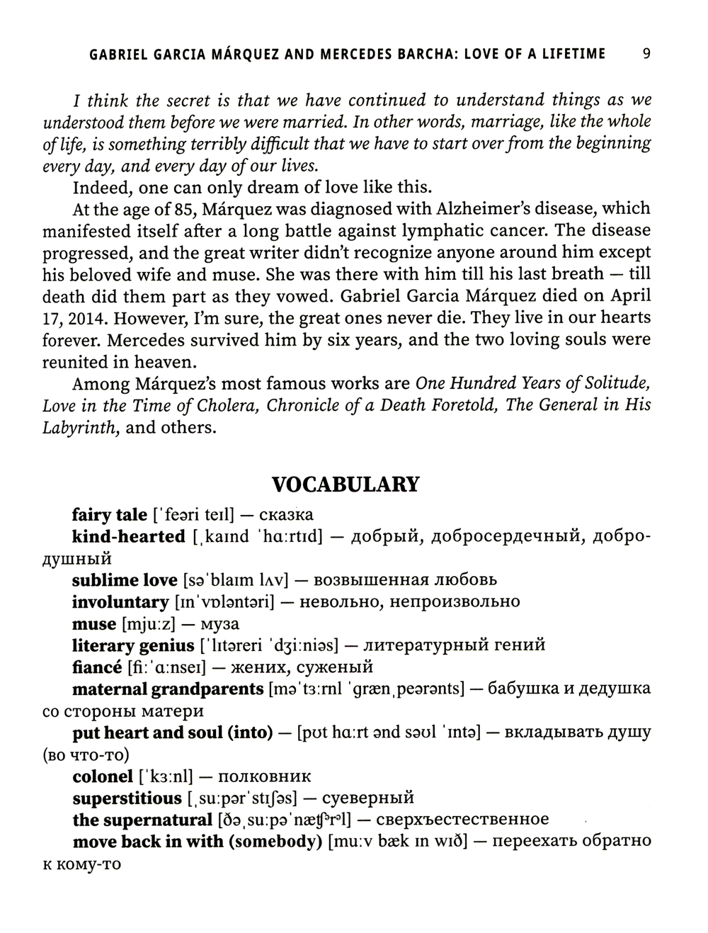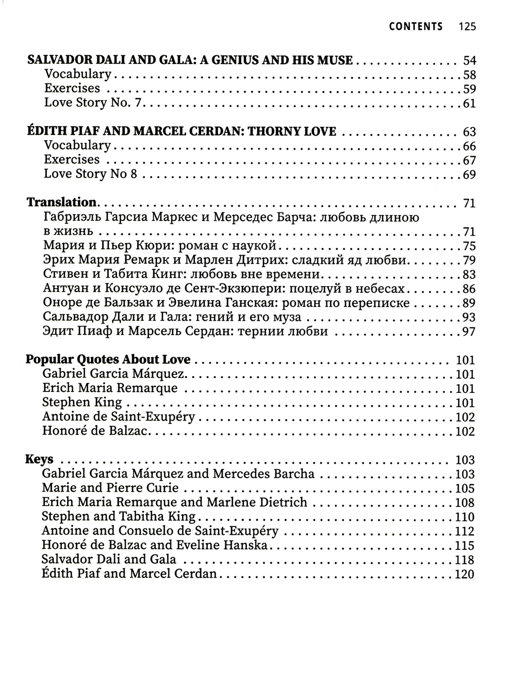 Хотите развить понимание прочитанного, расширить словарный запас и прокачать коммуникативные навыки на английском языке? Вам поможет эта книга, рассказывающая истории любви из жизни великих людей: Эдит Пиаф и Марселя Сердана, Антуана и Консуэло де Сент-Экзюпери, Эриха Марии Ремарка и Марлен Дитрих, а также других пар. Главной изюминкой издания являются творческие задания. Суть упражнений - прочитать романтические истории, а затем с помощью подсказок предположить дальнейшее развитие событий и придумать окончание истории со счастливым финалом. В конце издания есть переводы текстов и ключи к упражнениям, которые помогут проверить себя без помощи преподавателя.| Издательство | Феникс |