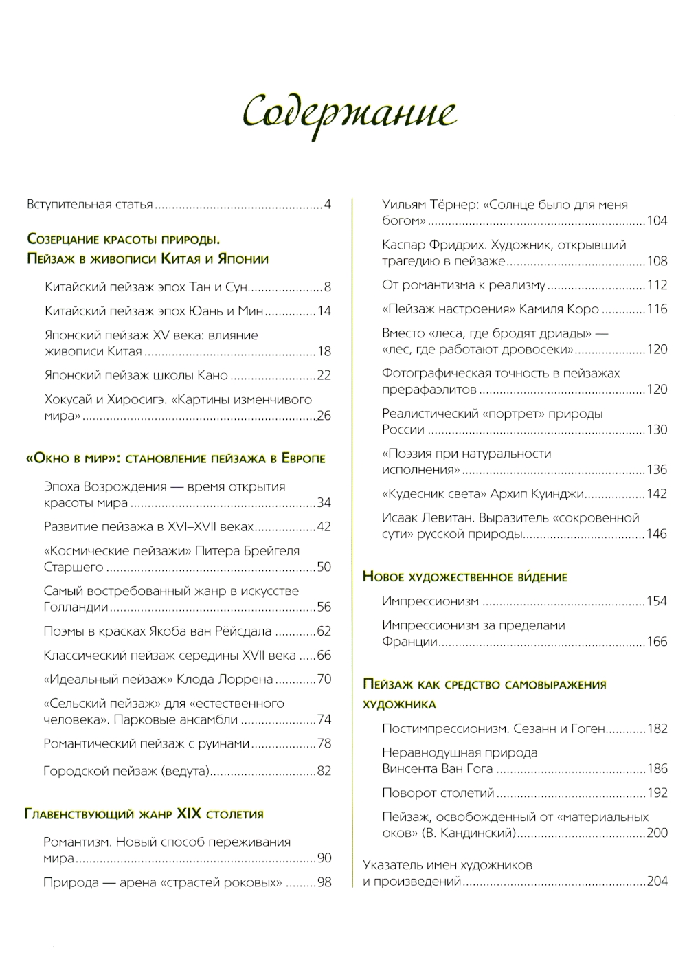 Издание включает более 140 знаменитых пейзажей Китая, Японии, Европы, России и Америки, которые позволят совершить захватывающее путешествие через континенты и эпохи и раскрыть всё многообразие и красоту этого жанра. Китайские свитки с пейзажами «горы-воды», японские ширмы с сюжетами смены времен года, знаменитые гравюры укиё-э Хиросигэ и Хокусая, «космические пейзажи» Брейгеля, городские виды (ведуты) Каналетто, «идеальные» пейзажи Лоррена, зрелищные марины Айвазовского и Тёрнера, грандиозные виды дикой природы художников Школы реки Гудзон, уголки лесного царства Шишкина и французских барбизонцев, «пейзажи настроения» Коро, Саврасова и Левитана, красочные полотна Моне и его американских последователей Чейза и Хассама, экспрессивные картины Ван Гога... Пейзаж, самый популярный и ведущий жанр живописи, предстанет во всей своей многогранности и великолепии. Обзорные статьи и комментарии к картинам помогут составить представление о развитии пейзажа в период с VII по начало XX века, глубже понять и оценить мастерство великих художников. Для широкого круга читателей.| Издательство | Просвещение-Союз |