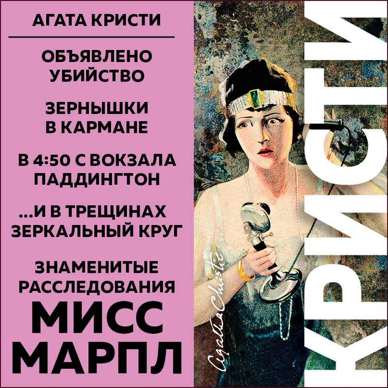Жизнь Агаты Кристи - королевы детектива была насыщена бесконечными путешествиями и приключениями. В годы Первой мировой войны она трудилась сестрой милосердия, летала на аэроплане, обожала верховую езду и серфинг. Но прославилась своими детективными романами. Ее книги переведены на 57 языков, издаются в 100 странах мира. Продолжают продаваться по 4 000 000 экземпляров в год. Эркюль Пуаро и Мисс Марпл - два самых знаменитых детектива. В сборнике 4 романа, входящие в Топ-10 книг из сериала о Мисс Марпл: «Объявлено убийство», «Зернышки в кармане», «В 4:50 с вокзала в Паддингтон», «И в трещинах зеркальный круг». Всего 20 рассказов и 12 романов связывают Агату Кристи и Мисс Марпл. Острый взгляд и пытливый ум - самое опасное оружие безобидной старушки, способной задавать порой очень щекотливые вопросы и выводить подозреваемых на чистую воду. «Стать Шерлоком Холмсом в юбке, видит Бог, не собиралась. Но не умею молчать, когда вижу несправедливость!»| Издательство | ООО "Издательство "Эксмо" |