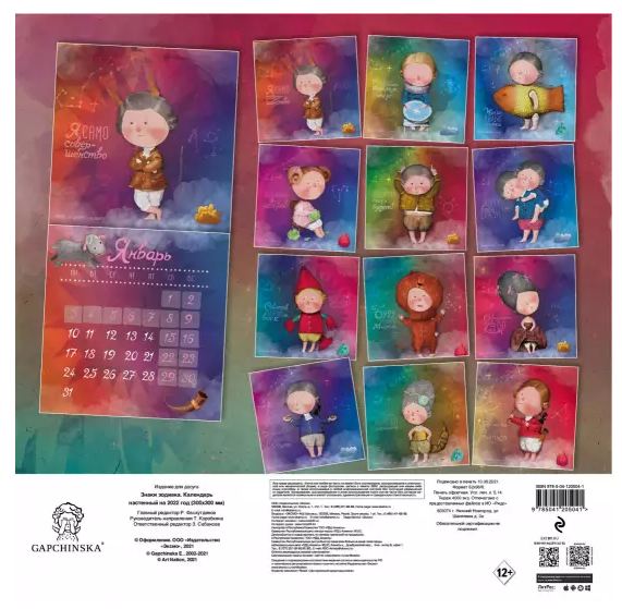 GAPCHINSKA представляет серию настенных календарей. Герои каждого календаря - то ли дети, то ли ангелы - они любят шоколад и колбаску, играть и шалить. Работы художницы наполнены милым позитивом, который гарантированно поднимает настроение даже самому угрюмому скептику. Несмотря на то, что ее маленькие карапузы лопают плюшки и конфеты, устраивая пир животику, они не забывают и о гимнастике души - устраивают маскарады и занимаются йогой. Всех сюжетных линий здесь не перечесть! Обязательно "прогуляйтесь" по страницам календаря, по миру непосредственности, детской затейливости, трогательной кокетливости.