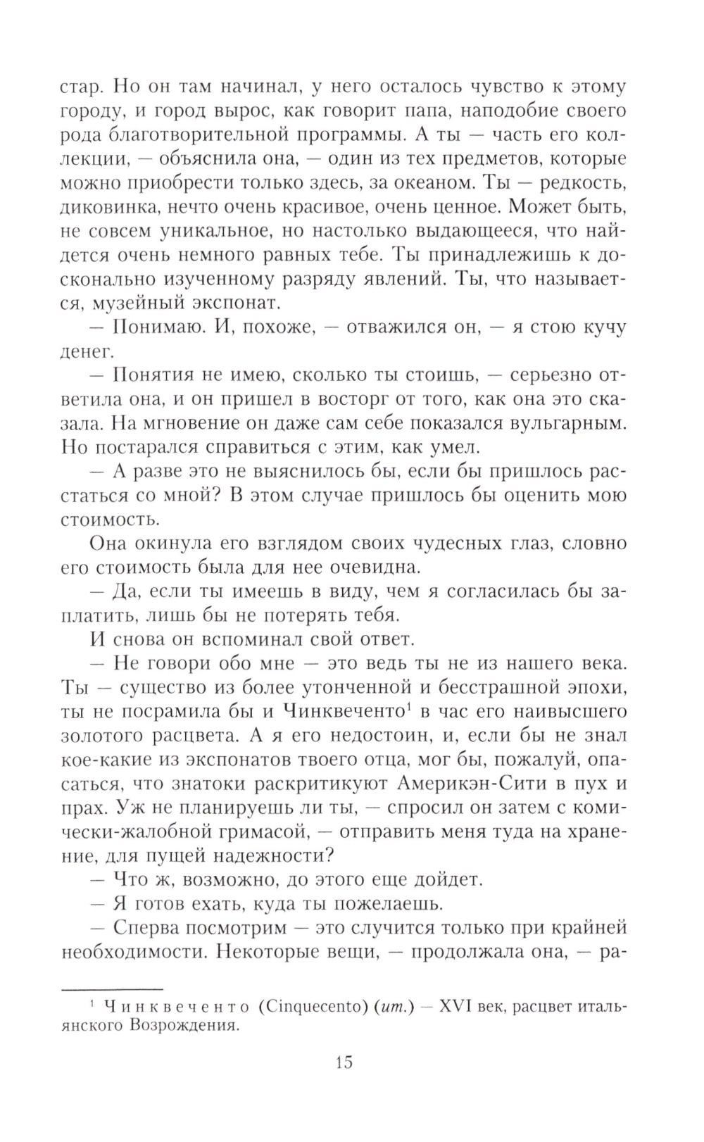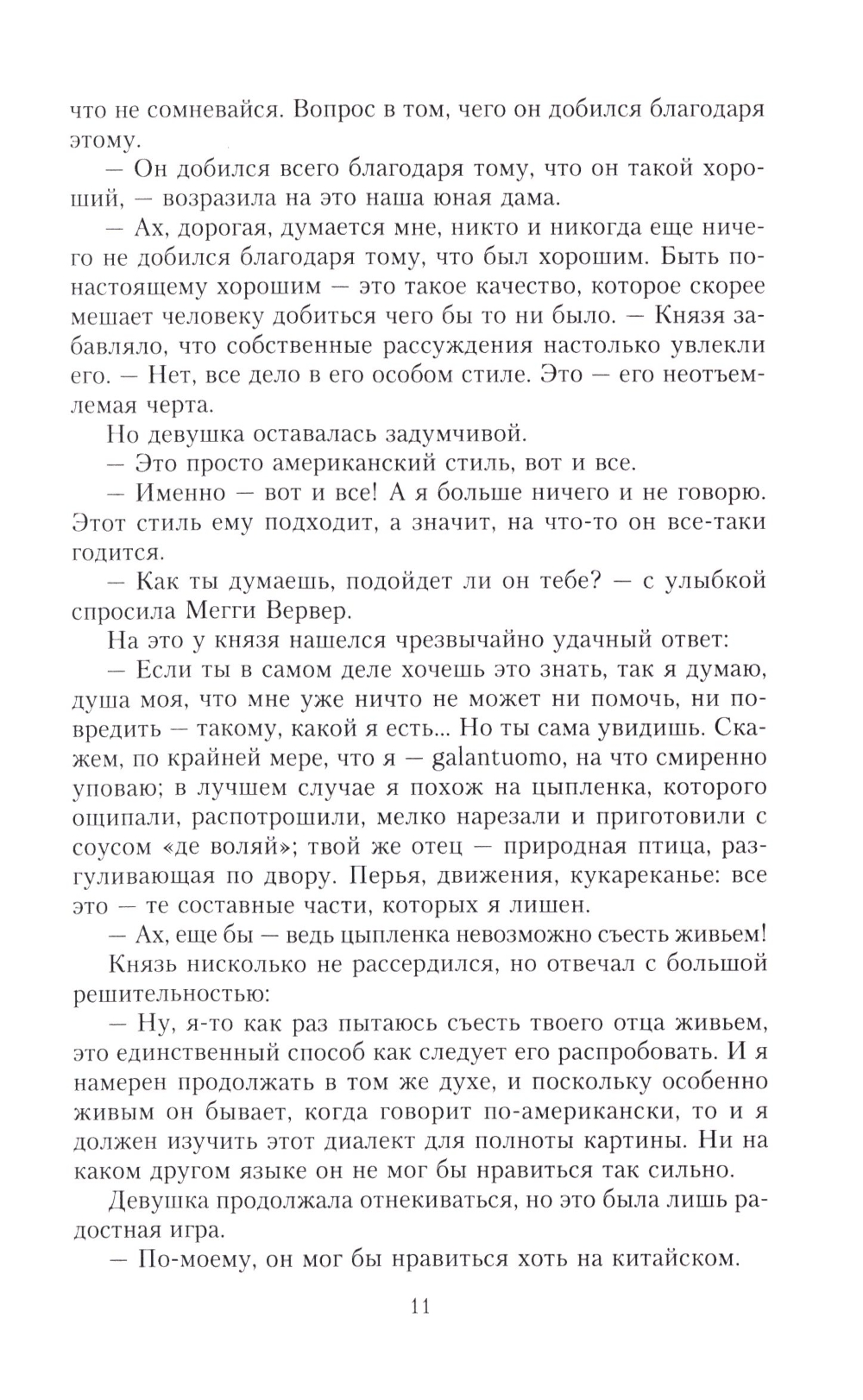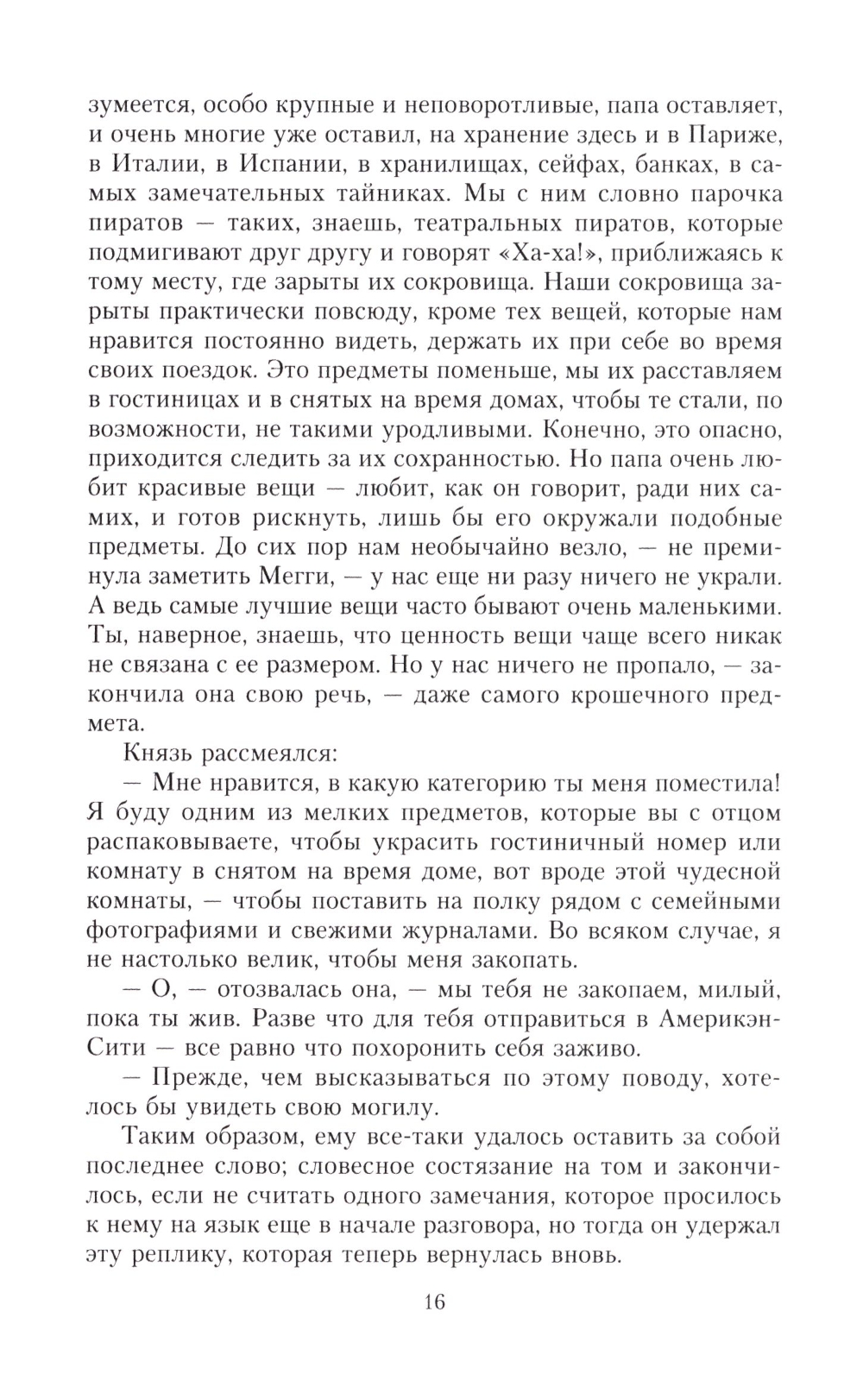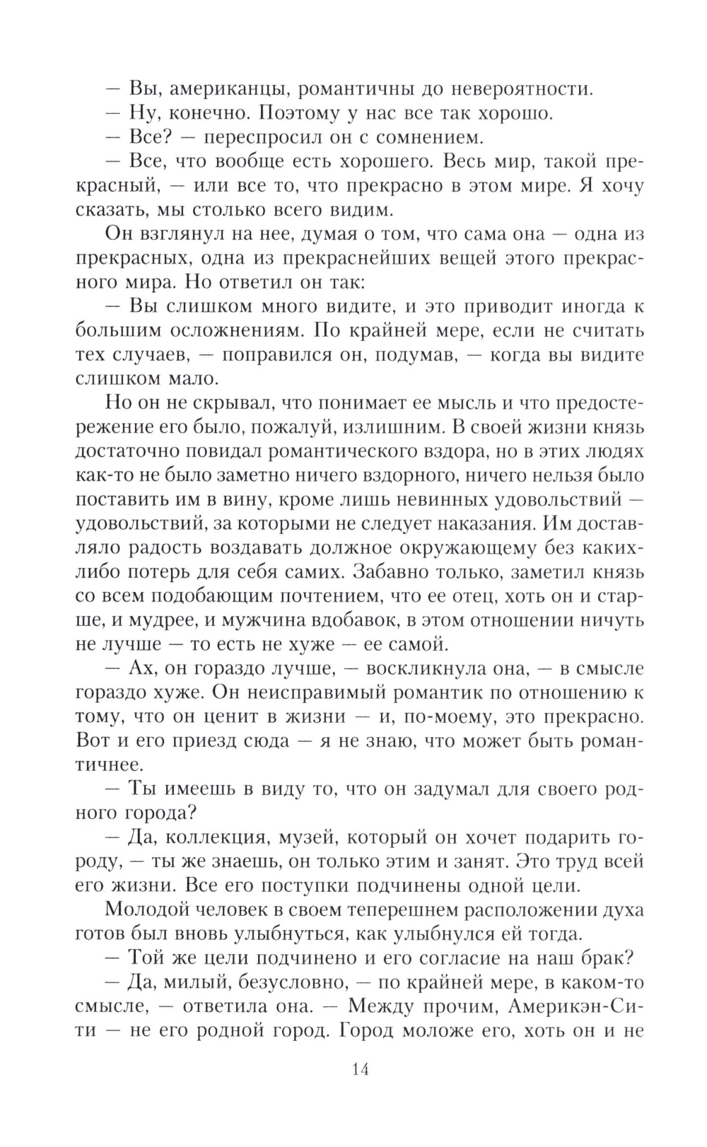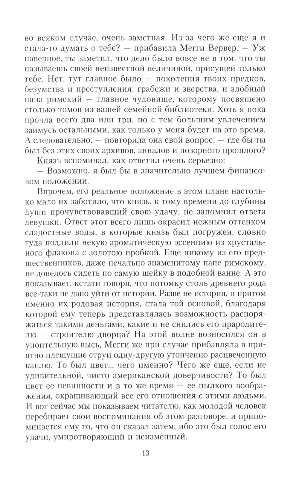 Мегги Вервер, дочь американского миллионера Адама Вервера, коллекционера и тонкого ценителя художественных ценностей, выходит замуж за князя Америго - молодого итальянца из обедневшего аристократического рода. Мегги влюблена и счастлива, однако ее тревожит мысль, что ее давно овдовевший отец, увлеченный совершенствованием своей коллекции, останется совсем один. Накануне свадьбы Мегги знакомит отца с давней подругой - очаровательной американкой Шарлоттой Стэнт, полагая, что тому пойдет на пользу общество молодой особы. Мегги не осознает, что, впуская в дом обольстительную женщину, рискует быть преданной и обманутой... Генри Джеймс (1843-1916), признанный классик американской литературы, мастер психологической прозы, описывает сложные взаимоотношения двух пар, связанных по прихоти судьбы узами любви, и отвечает на извечный вопрос: богатство - дар судьбы или проклятье?..| Издательство | Центрполиграф |