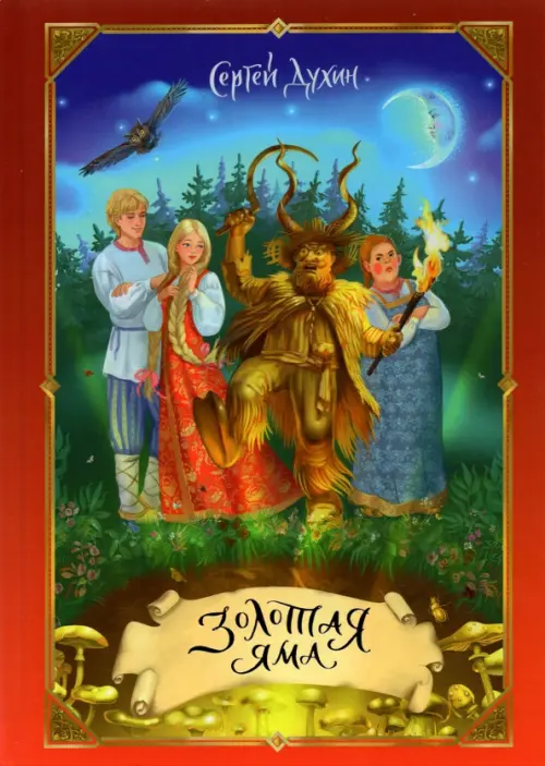 На пологом холме, за рекой, неподалеку от дремучего леса раскинулось большое село. Жили люди в нем дружно и весело - вместе поля засевали, вместе урожай собирали, вместе рыбу ловили да праздники отмечали. И было так всегда, пока один из жителей села, хитрый бородатый мельник Евстигней, яму волшебную в лесу не обнаружил. Что тут началось! Появилось в селе чудище золотое рогатое, по ночам людям спать не дает, по улицам бегает, шумит да буянит! Неужели в селе смельчаков не найдется, которые чудище утихомирят?. .