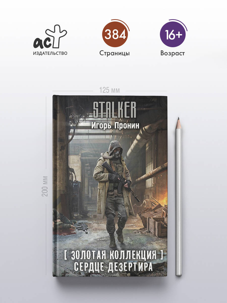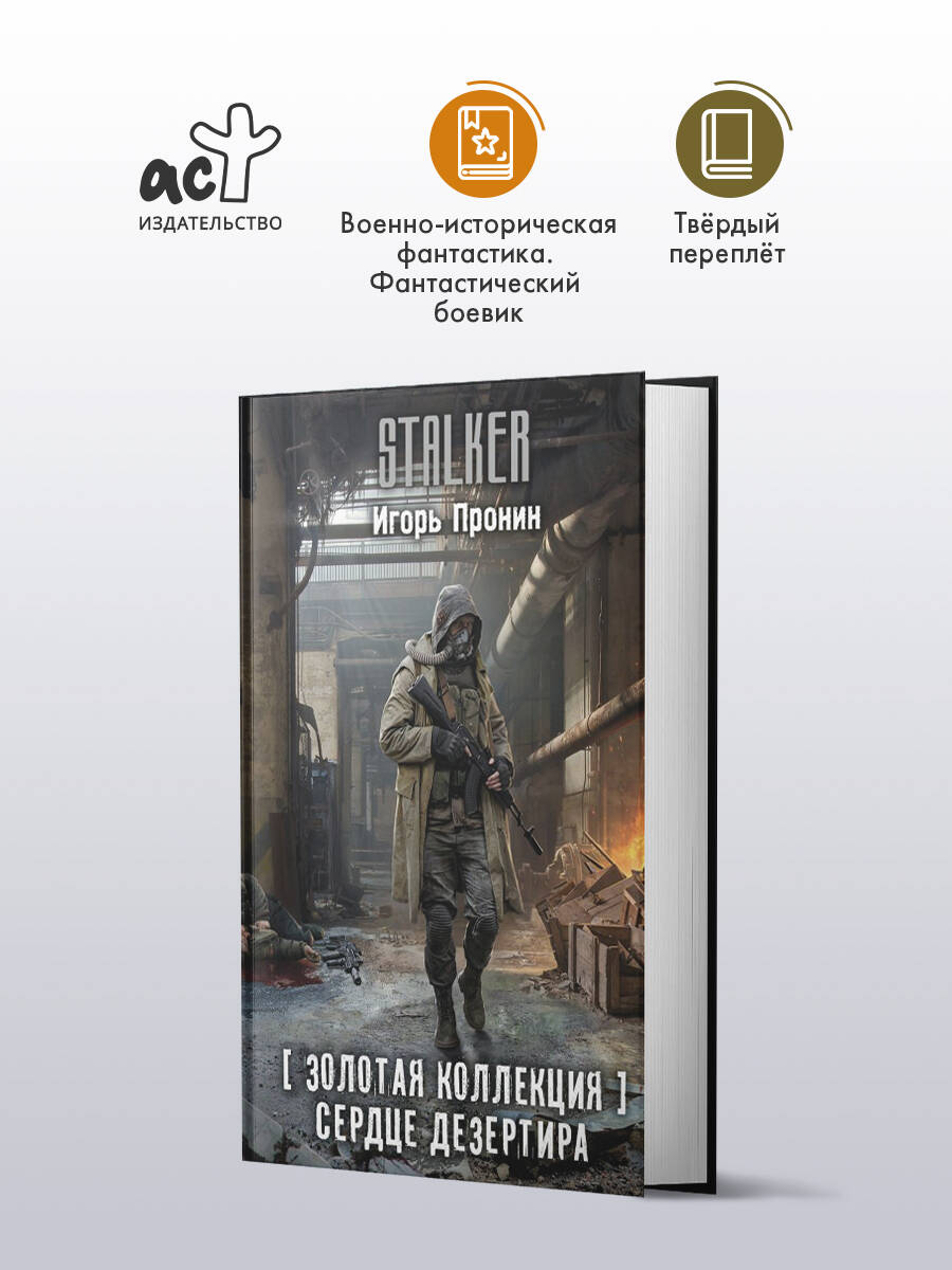 - Цикл «Золотая коллекция» - это переиздание легендарных романов серии S.T.A.L.K.E.R., впервые вышедших в 2007-2010 годах. - Роман публикуется под настоящим именем автора - ранее он был известен читателям под псевдонимом Алексей Степанов. - Первый роман цикла, «Дезертир», вышел в 2007 году и разошелся тиражом свыше 100 000 экземпляров; продолжение - «Сердце Дезертира» - достигло отметки в 60 000 экземпляров. - Игорь Пронин (1968-2015) - писатель-фантаст, автор популярных циклов и соавтор Вадима Панова по вселенной «Тайный город». Работал также над проектами «Этногенез», «Чистилище» и над новеллизацией фильма «Черная молния». - Серия Stalker.| Издательство | Издательство "АСТ" |