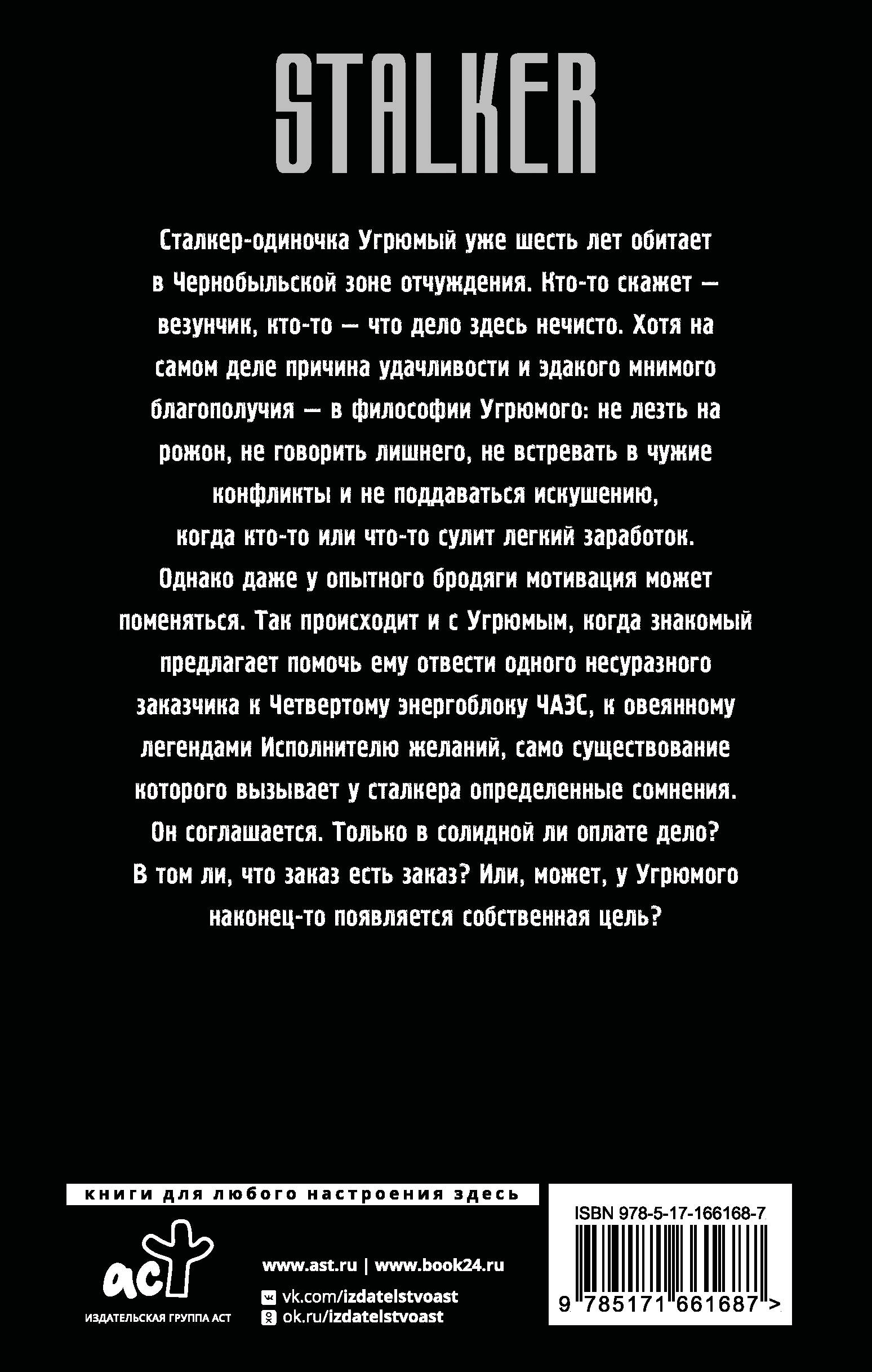 - Переиздание культового романа в новом оформлении. - Захватывающая постапокалиптическая фантастика о людях, адаптировавшихся к постоянной жизни в Зоне отчуждения, и о тайне Четвертого энергоблока - того самого, который взорвался в 1986 году во время катастрофы на Чернобыльской атомной электростанции. - Алексей Гравицкий - писатель-фантаст, а также автор сценариев к фильмам и сериалам, таким как «Великая», «Непрощенный», «Чикатило», «Онегин». - Must read для всех, кто зачитывался историями о сталкерах братьев Стругацких, романами Сергея Тармашева, Дмитрия Силлова, Андрея Левицкого. - Серия Stalker - фантастические романы, действие которых разворачивается в аномальных зонах, возникших вследствие катастроф.| Издательство | Издательство "АСТ" |