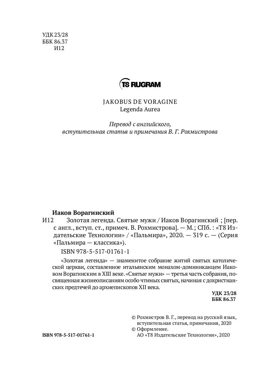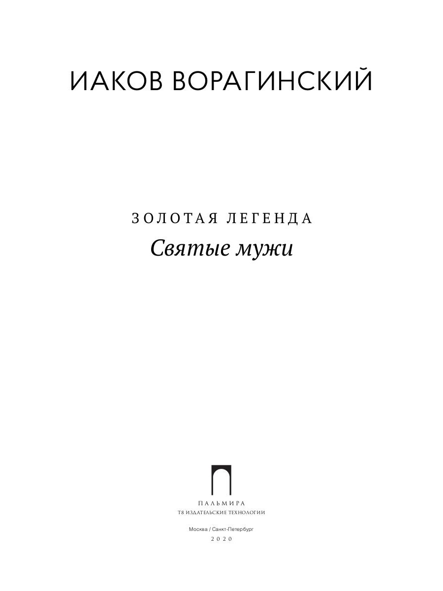 «Золотая легенда» - знаменитое собрание житий святых католической церкви, составленное итальянским монахом-доминиканцем Иаковом Ворагинским в XIII веке. «Святые мужи» - третья часть собрания, посвященная жизнеописаниям особо чтимых святых, начиная с дохристианских предтечей до архиепископов XII века.