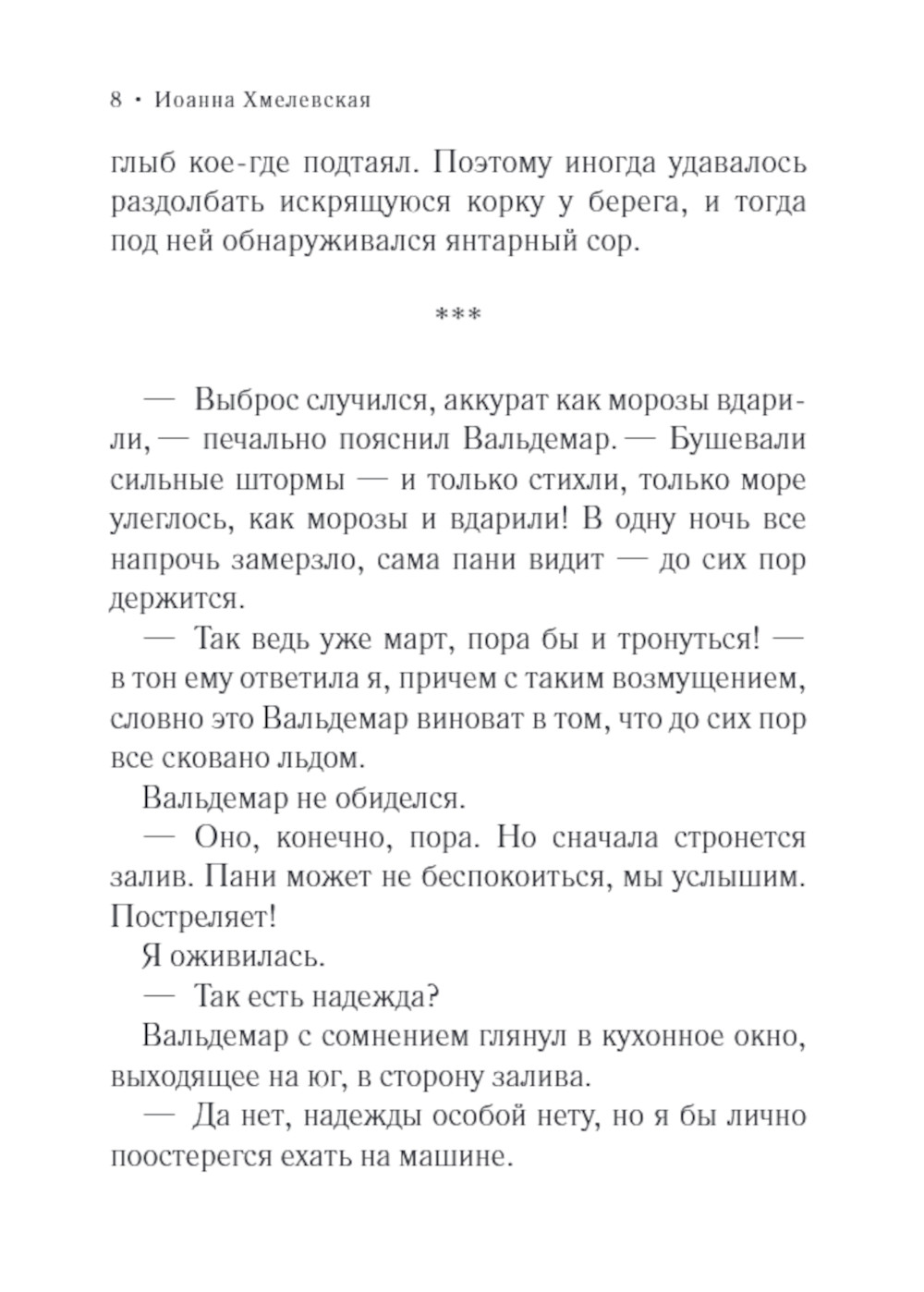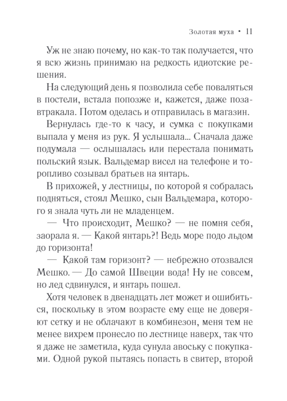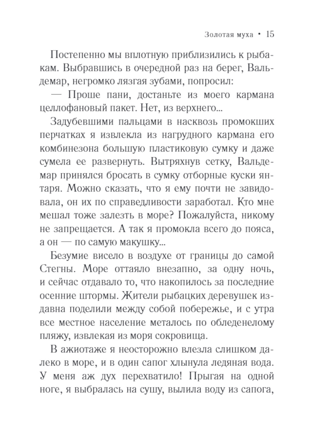 Пани Иоанна в своем репертуаре. Отправившись отдохнуть на морское побережье, подышать свежим воздухом и насладиться безлюдьем апрельских пляжей, она оказывается в эпицентре истории с убийством и похищением. Все побережье охвачено безумием - идет охота за янтарем. Но вот незадача, из-под самого носа неизвестные злодеи уводят фантастическую находку - золотую муху, навеки застывшую в огромной янтарной капле. И пани Иоанне ничего не остается, как начать собственное расследование и вырвать золотую муху из рук негодяев, чтобы хотя бы минутку полюбоваться сокровищем.