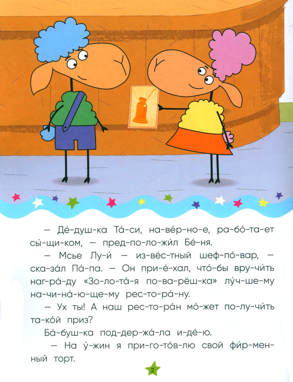 «Отель у Овечек» - лучший отель, в котором живут веселые и любознательные овечки Белла и Беня. С ними вы точно не заскучаете! Однажды в отель приезжает известный шеф-повар мсье Луи вместе со своей внучкой Таси. Он собирается вручить награду лучшему ресторану. Овечки решают получить её для отеля! Чтобы ребенок смог самостоятельно прочитать историю с любимыми персонажами, слова в книге поделены на слоги, а также проставлены ударения. Читайте с удовольствием и пользой!| Издательство | Мозаика-Синтез |