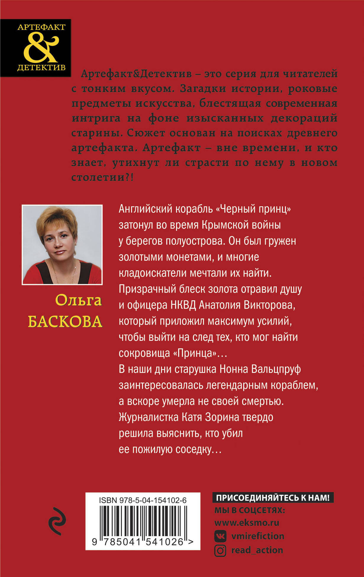Детектив «Золото "Черного принца"» - захватывающий остросюжетный роман популярного автора серии «Артефакт&Детектив» Ольги Басковой. В новом детективе описывается судьба сундуков с золотом, затонувших с легендарным кораблем «Черный принц» у берегов Крыма! Английский корабль «Черный принц» затонул во время Крымской войны у берегов полуострова. Он был гружен золотыми монетами, и многие кладоискатели мечтали их найти. Призрачный блеск золота отравил душу и офицера НКВД Анатолия Викторова, который приложил максимум усилий, чтобы выйти на след тех, кто мог найти сокровища «Принца»… В наши дни старушка Нонна Вальцпруф заинтересовалась легендарным кораблем, а вскоре умерла не своей смертью. Журналистка Катя Зорина твердо решила выяснить, кто убил ее пожилую соседку… Писательница Ольга Баскова поведала о теме нового детектива: «Этот корабль давно меня интересовал, и я приступила к созданию романа. В процессе работы над книгой мне попались документальные материалы о военачальниках Севастополя, незаслуженно репрессированных, и о членах их семей. Я увидела возможность показать страшное время 30-х годов, когда могущественная организация НКВД вершила судьбы людей. Мне кажется, об этом нужно помнить и говорить. Главный герой Шаткин имеет много общего с репрессированными военачальниками, отрицательный герой Викторов вобрал в себя черты тех, кто, имея в руках власть, использовал ее для личных целей. Кроме того, в книге прослеживается история семьи. Читатели узнают, как складывалась судьба жен и детей так называемых "врагов народа". Думаю, эта книга будет полезна всем, кто интересуется историей».| Издательство | ООО "Издательство "Эксмо" |