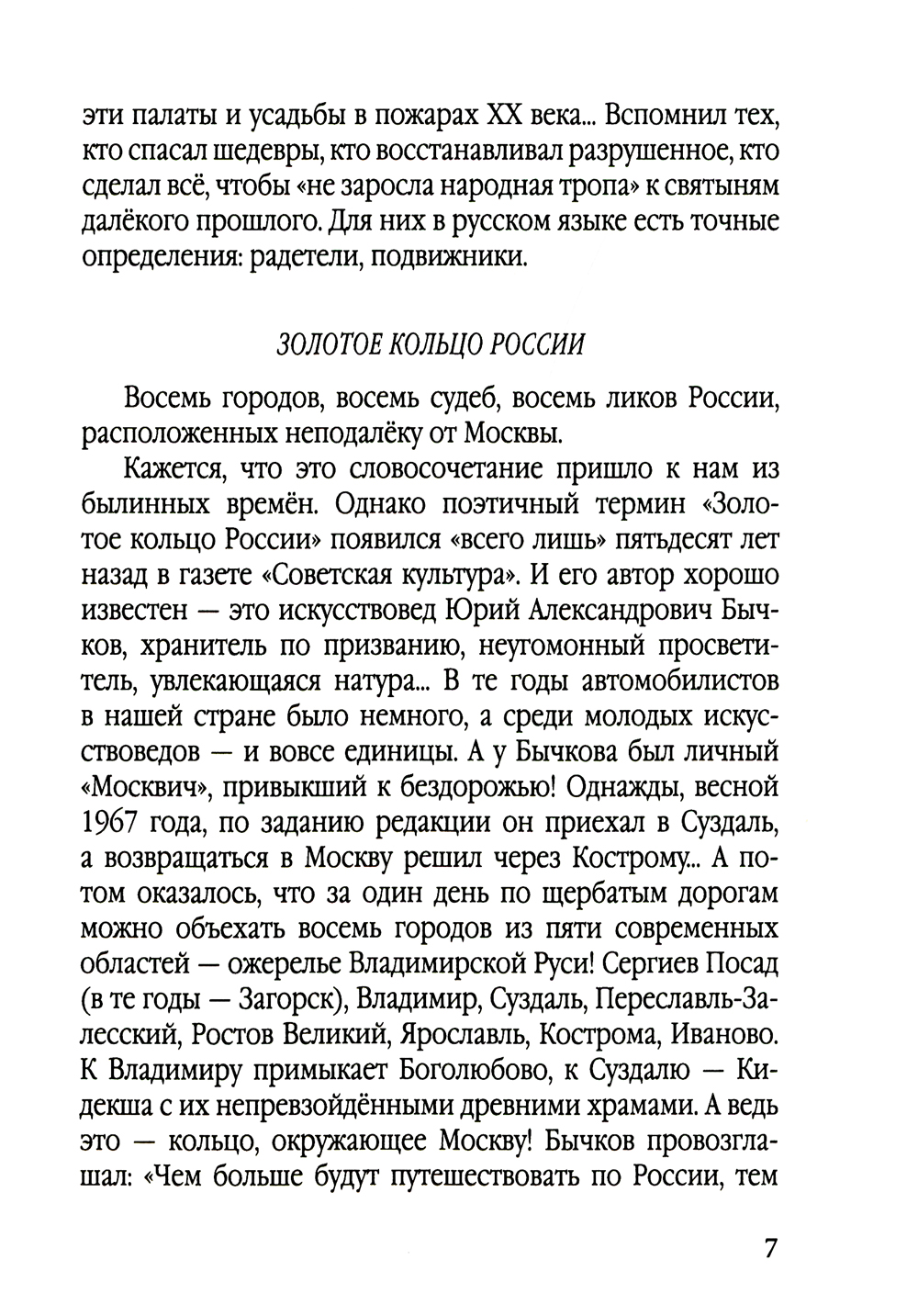 Золотое кольцо России - это неизменно увлекательное путешествие, которое запоминается на всю жизнь. Ростов Великий, Владимир, Суздаль, Ярославль, Сергие-Посад, Кострома, Переславль-Залесский, Иваново. В памяти остаются блистающие на солнце купола, суровые монастыри, таинственные судьбы князей и героев. Эта крепости, полные шедевров русской архитектуры, опоясали Москву - столицу Руси. В этой книге открывается потаённая история городов Золотого кольца. Тайный смысл храмов, которые связаны с подвигами военных и юродивых. Такие есть в каждом из городов Золотого кольца. Нас пленяют судьбы этих незаурядных людей, создававших шедевры и веривших в спасение человечества. Книга не просто интересна, а необходима каждому, кто собирается проездиться по России, кто интересуется городами нашей страны и хотел бы их посетить. Хватайте эту книгу, садитесь в автобус, автомобиль или на поезд - и вперёд! К новым знаниям, впечатлениям и приключениям!| Издательство | Родина |