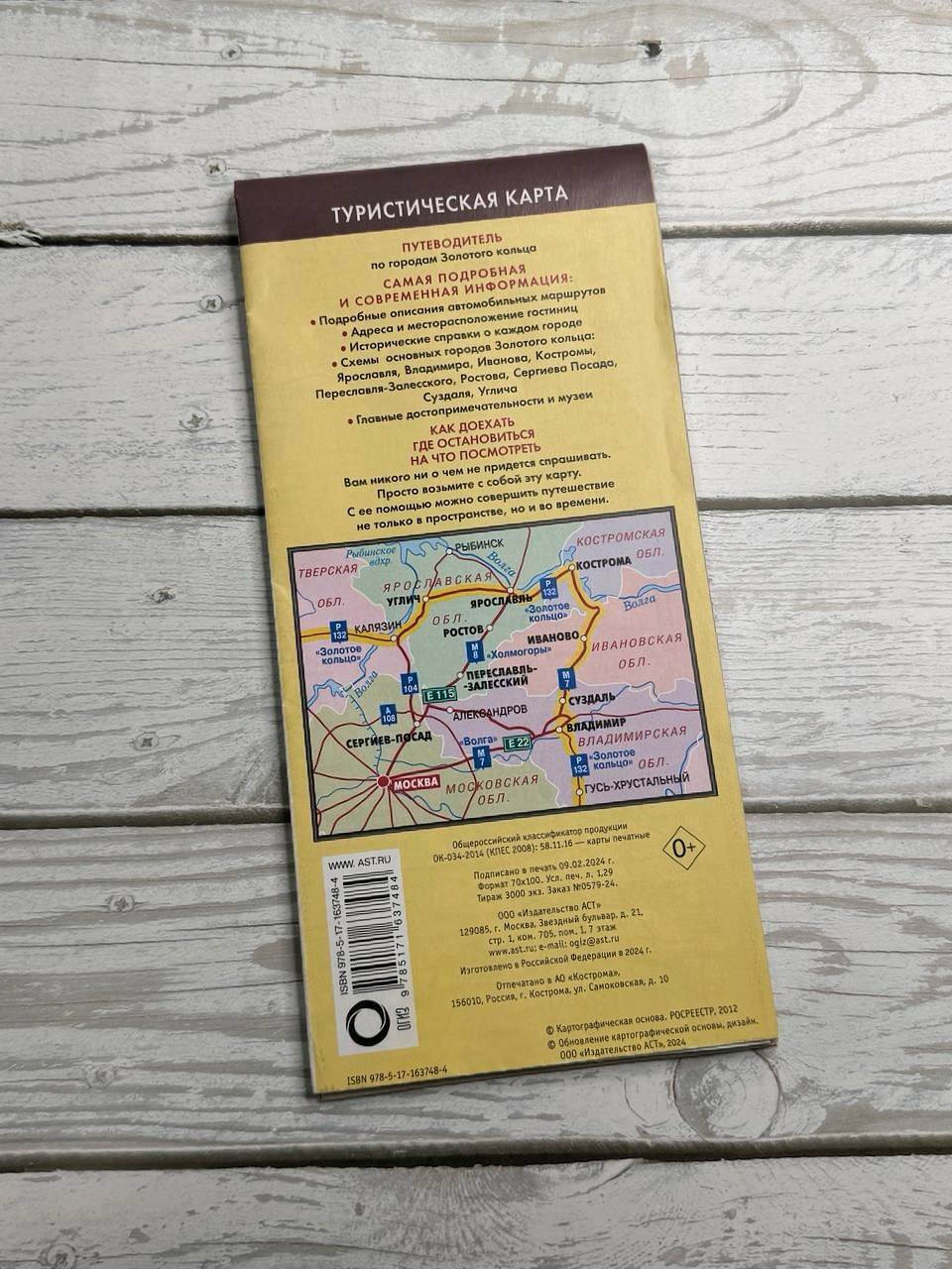 Складная туристическая карта "Золотое кольцо России" посвящена уникальному региону нашей страны, расположенному в междуречье Волги и Оки, где сосредоточены древние русские города, без которых немыслима история России. Масштаб карты 1:370 000 (в 1 см 3,7 км) и специально разработанная система условных обозначений позволили во всем многообразии представить имеющиеся в городах Золотого кольца исторические, архитектурные, религиозные и культурные памятники, многие из которых входят в список объектов Всемирного наследия ЮНЕСКО. На карте также подробно показана сеть автомобильных и железных дорог, обеспечивающих доступ к каждому из городов. Оборот карты представляет собой путеводитель по городам Золотого кольца, содержание которого составляют описания автомобильных маршрутов, исторические справки о каждом городе, адреса и месторасположение гостиниц, схемы городов Золотого кольца, их главные достопримечательности и музеи.| Издательство | Издательство "АСТ" |