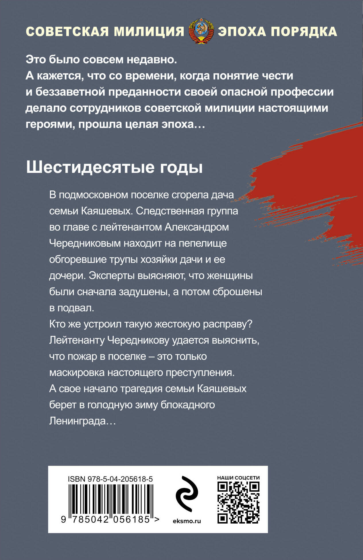 Романы о настоящих героях своей эпохи - сотрудниках советской милиции, людях, для которых служебный подвиг - обыденное дело. Шестидесятые годы. В подмосковном поселке сгорела дача семьи Каяшевых. Следственная группа во главе с лейтенантом Александром Чередниковым находит на пепелище обгоревшие трупы хозяйки дачи и ее дочери. Эксперты выясняют, что женщины были сначала задушены, а потом сброшены в подвал. Кто же устроил такую жестокую расправу? Лейтенанту Чередникову удается выяснить, что пожар в поселке - это только маскировка настоящего преступления. А свое начало трагедия семьи Каяшевых берет в голодную зиму блокадного Ленинграда… Это было совсем недавно. Когда честь и беззаветная преданность опасной профессии были главными и обязательными качествами советских милиционеров…| Издательство | ООО "Издательство "Эксмо" |