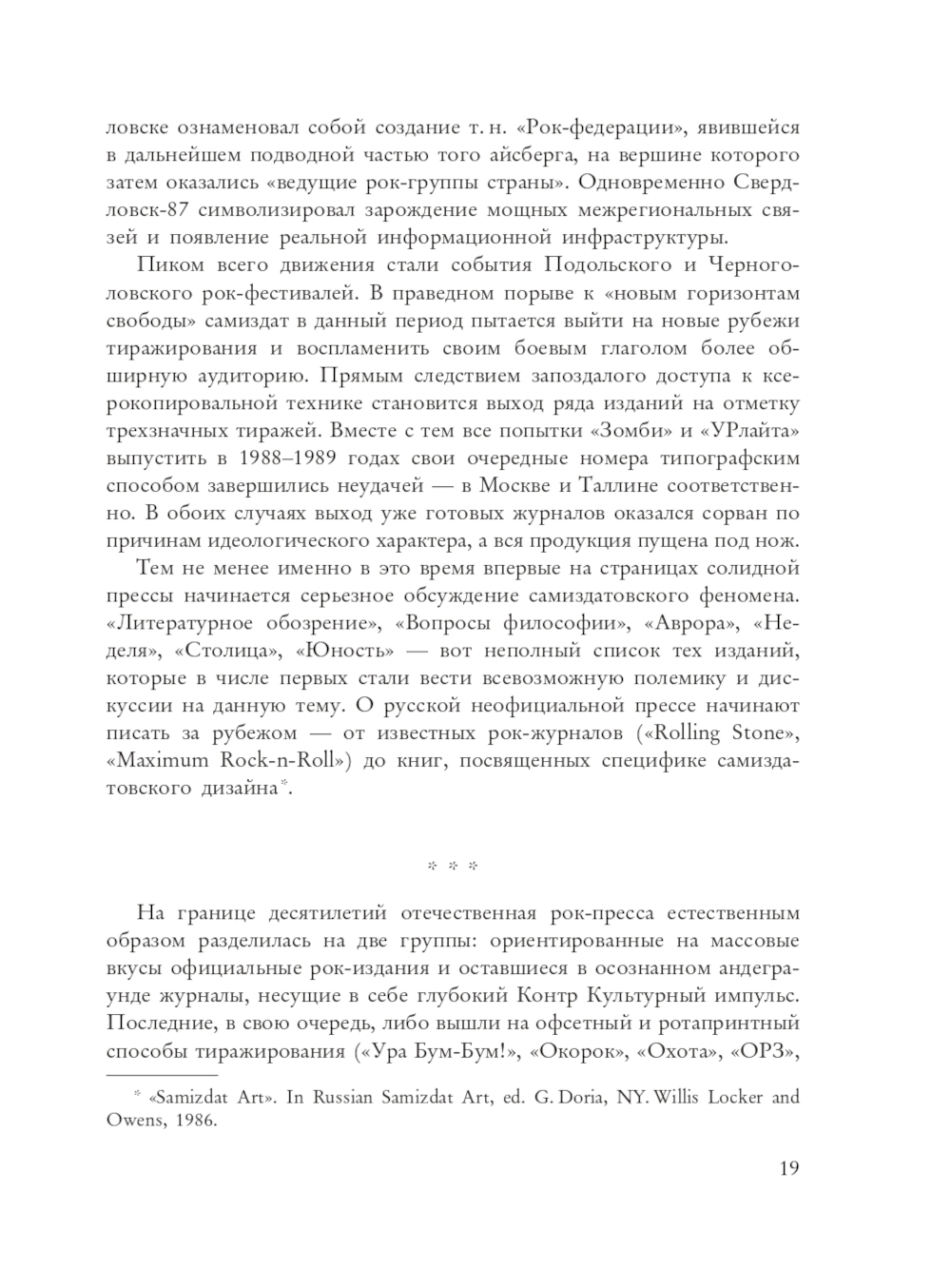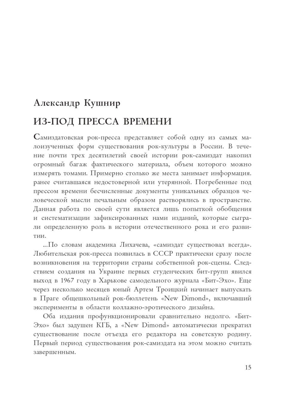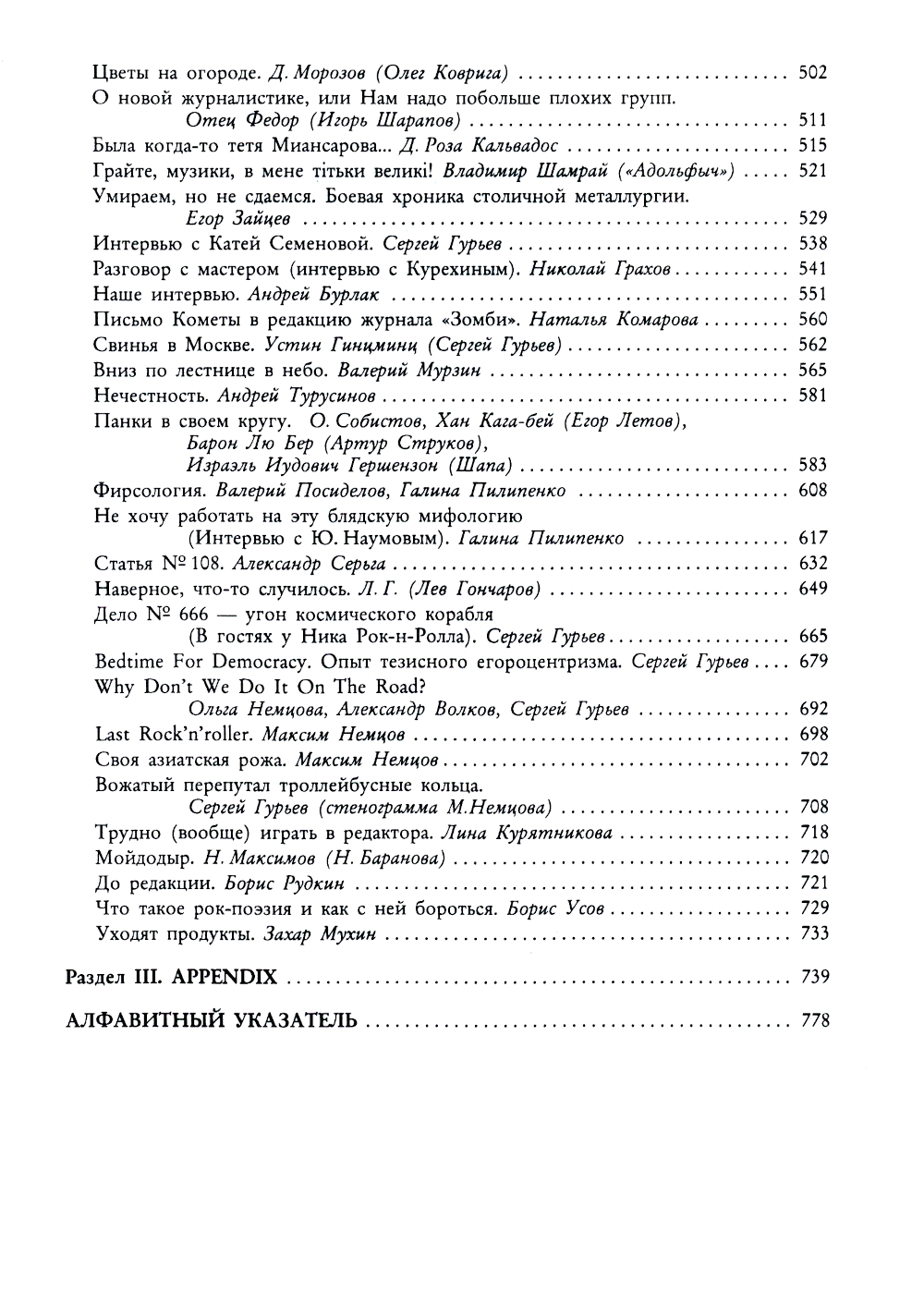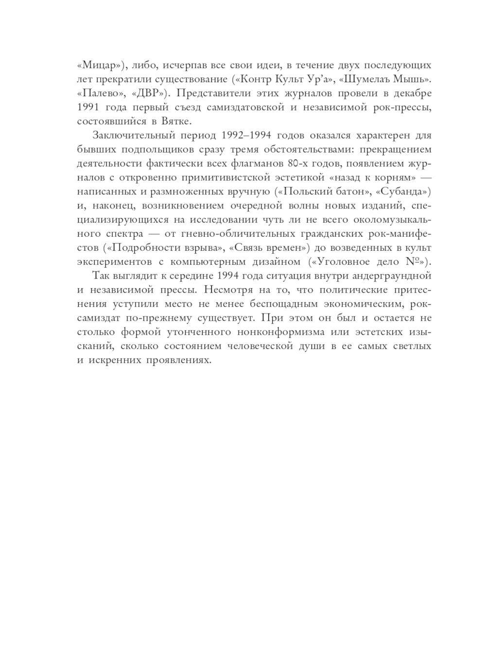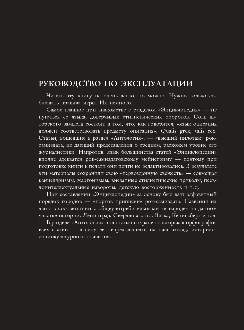 Название книги говорит само за себя. Перед вами энциклопедия развития независимой рок-журналистики на территории Советского Союза, СНГ и России. Она проливает свет на те времена, когда рок-музыка была уделом разрозненных групп энтузиастов, разбросанных по СНГ. На те годы, когда интерес к рок-музыке мог поставить человека вне закона и настроить против него консервативное советское и постсоветское общество. В книге два раздела. Первый раздел - «Энциклопедия», в нем рассказывается обо всех самиздатовских творениях с 1967 по 1994 год. Второй раздел - «Антология», где приведены без купюр самые заметные статьи самиздатовских творений.| Издательство | Metamorphoses |
