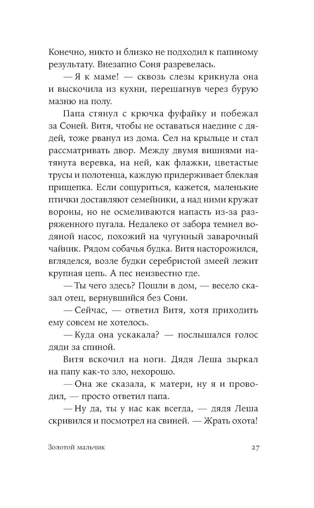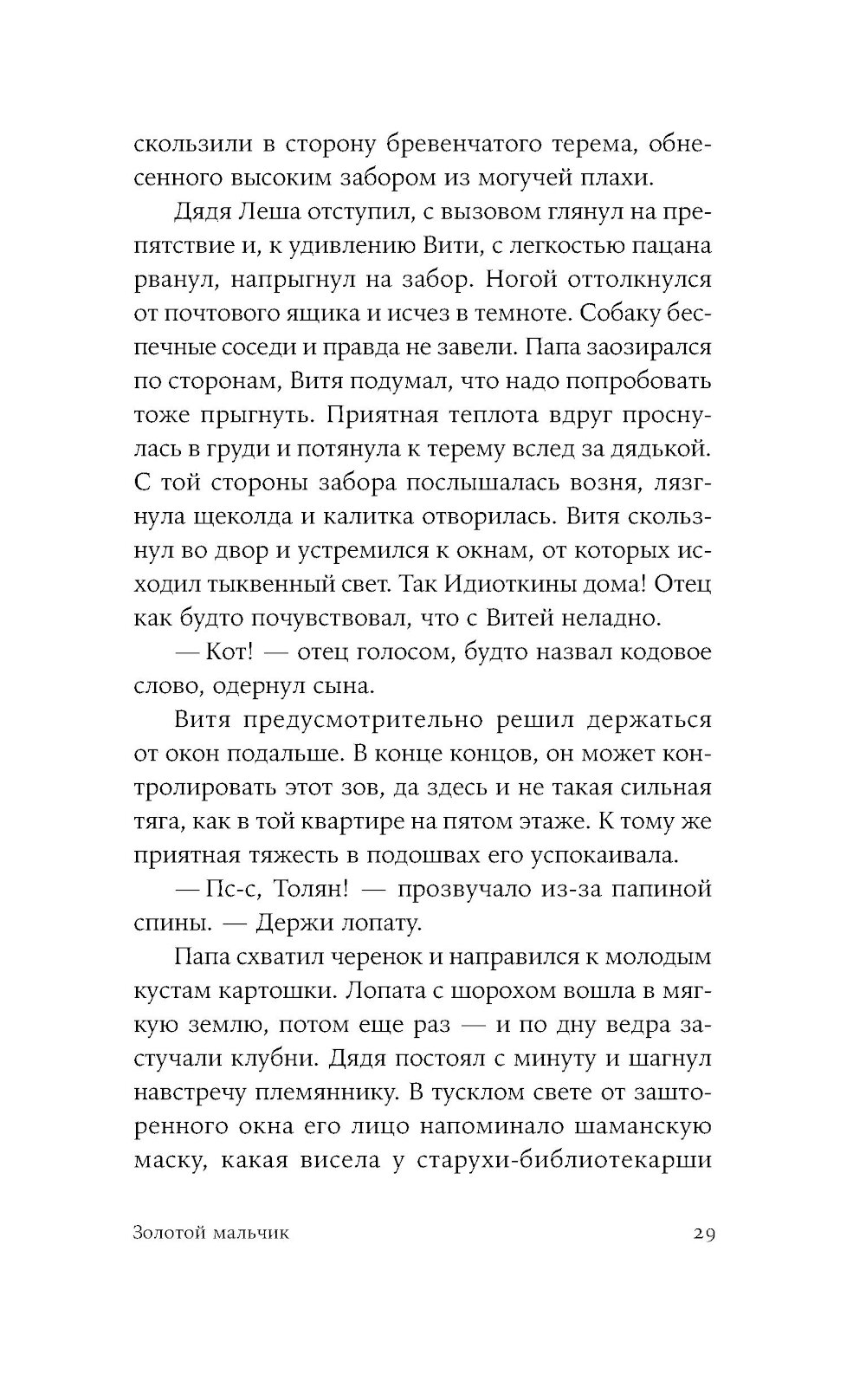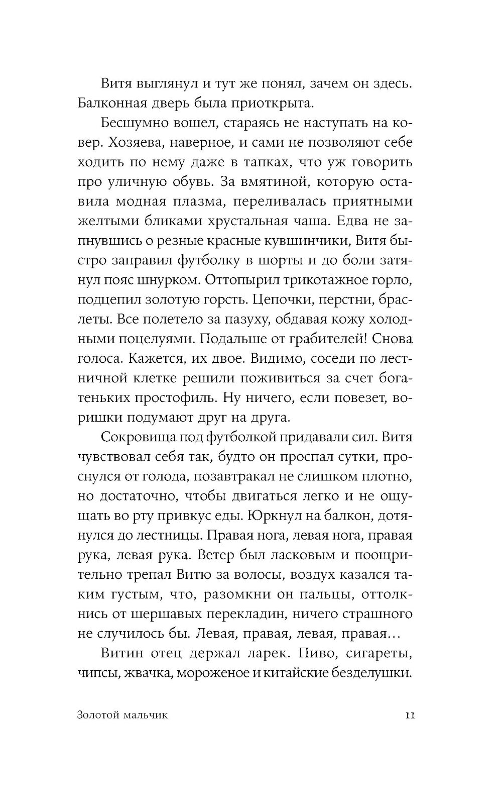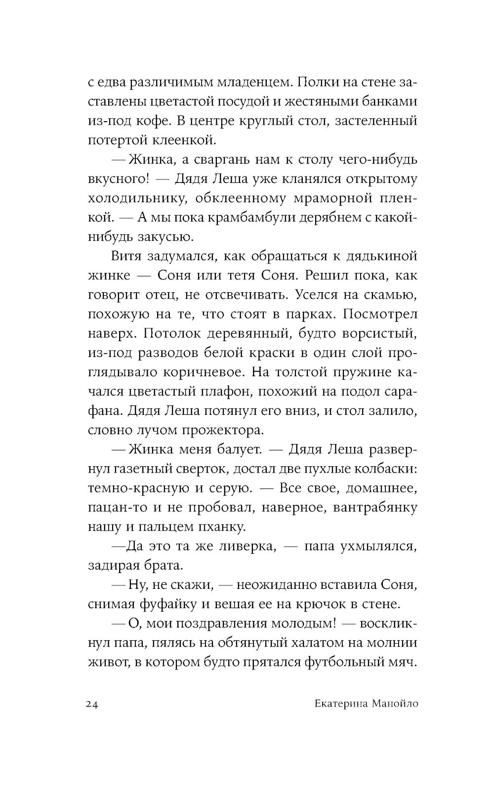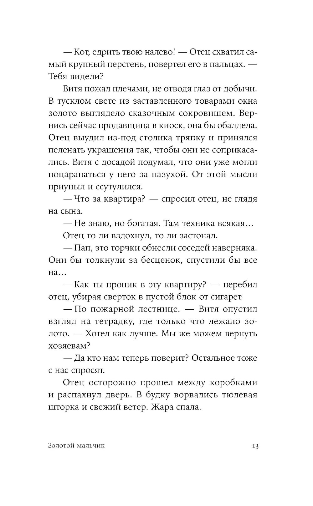 Герой нового романа Екатерины Манойло - мальчик Витя, обладающий необычным даром: он способен чувствовать золото под землей и в воде, отзываясь на его тепло трепетным эхом. Витя родился в посёлке Штормовом под Магаданом, среди золотоносных жил, где местные зарабатывают контрабандой драгоценного металла. Уникальное умение мальчика не может остаться в секрете - им начинают интересоваться злые люди, демоны этих мест. Чтобы спасти ребёнка, его родители решаются на опасное путешествие в поисках другой судьбы. Теперь, за многие тысячи километров от прииска, золото, бывшее в прошлой жизни постоянным спутником и источником силы Вити, становится магическим проводником в необъятном и чуждом мире.| Издательство | Альпина нон-фикшн |