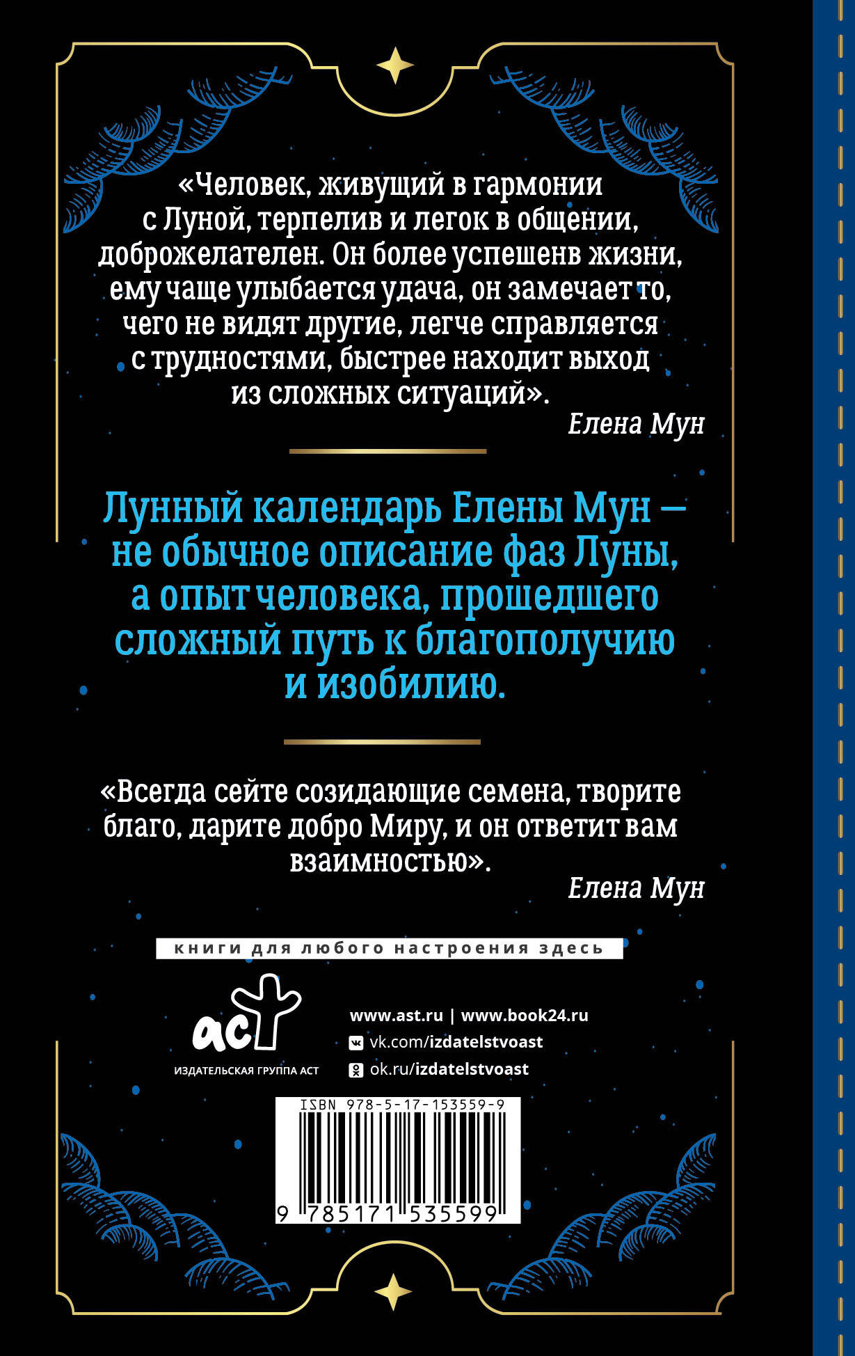 Лунный календарь много тысячелетий помогает планировать жизнь успешным политикам, полководцам и богатейшим людям во всем мире. Ведь если выбрать подходящий день для встречи, магического ритуала или важного мероприятия, то обстоятельства будут удивительным образом складываться в вашу пользу. Автор этой книги, Елена Мун - создательница астрологического блога с полуторамиллионной аудиторией - делится с читателем самыми действенными лунными ритуалами и знакомит с важными особенностями лунных дней. И это знание поможет вам управлять событиями своей жизни. В книге вы также найдете полный лунный календарь до 2030 года, с которым сможете выбирать благоприятные дни для важных дел, привлекать удачу, любовь и деньги.| Издательство | ИЗДАТЕЛЬСТВО "АСТ" |