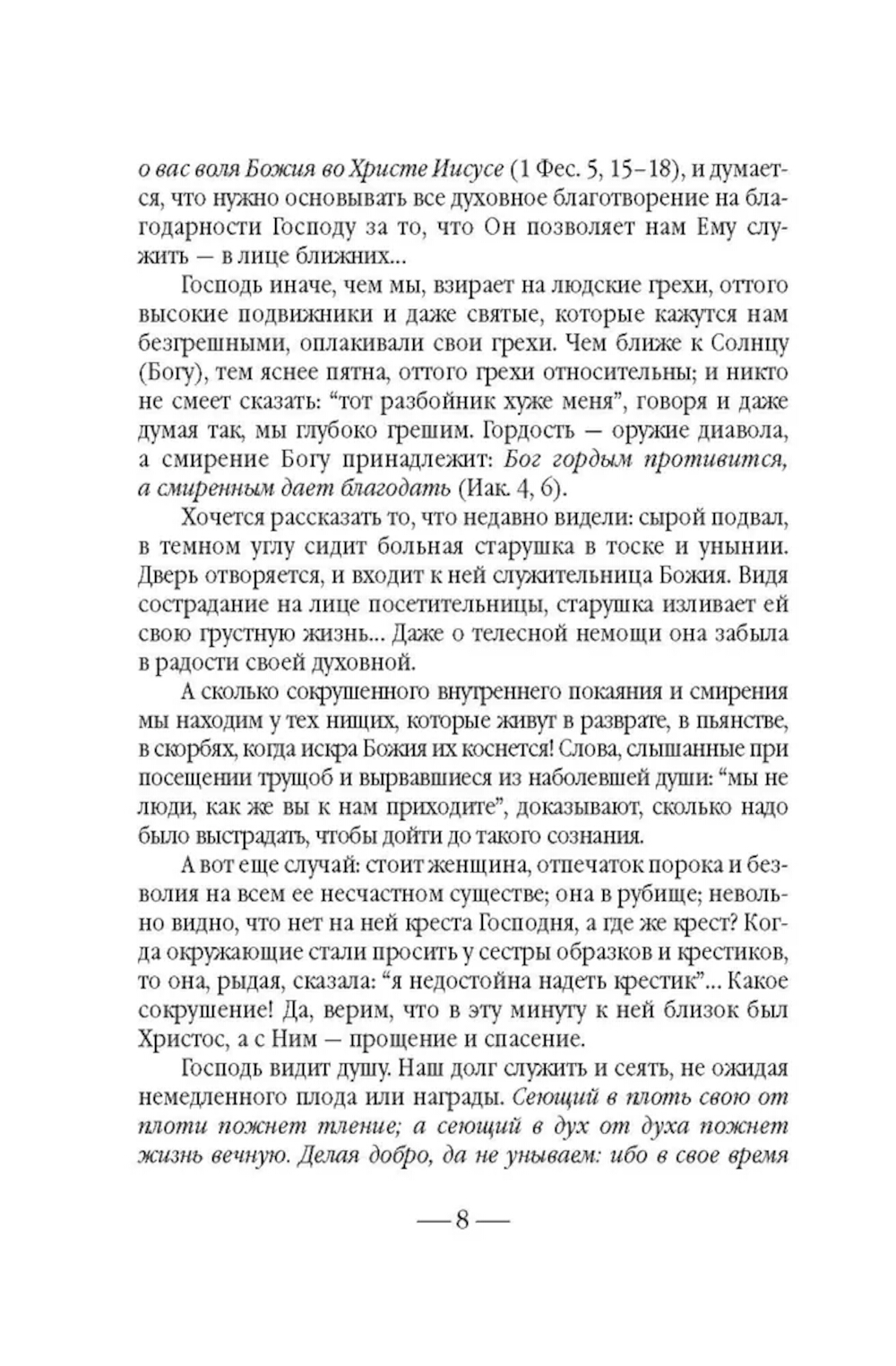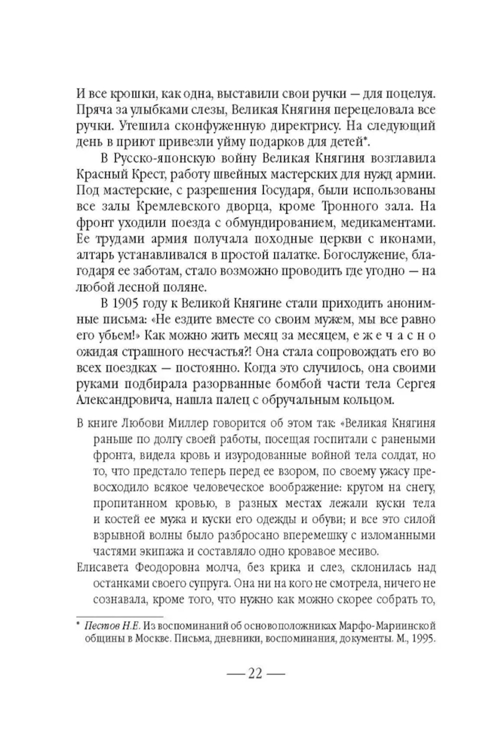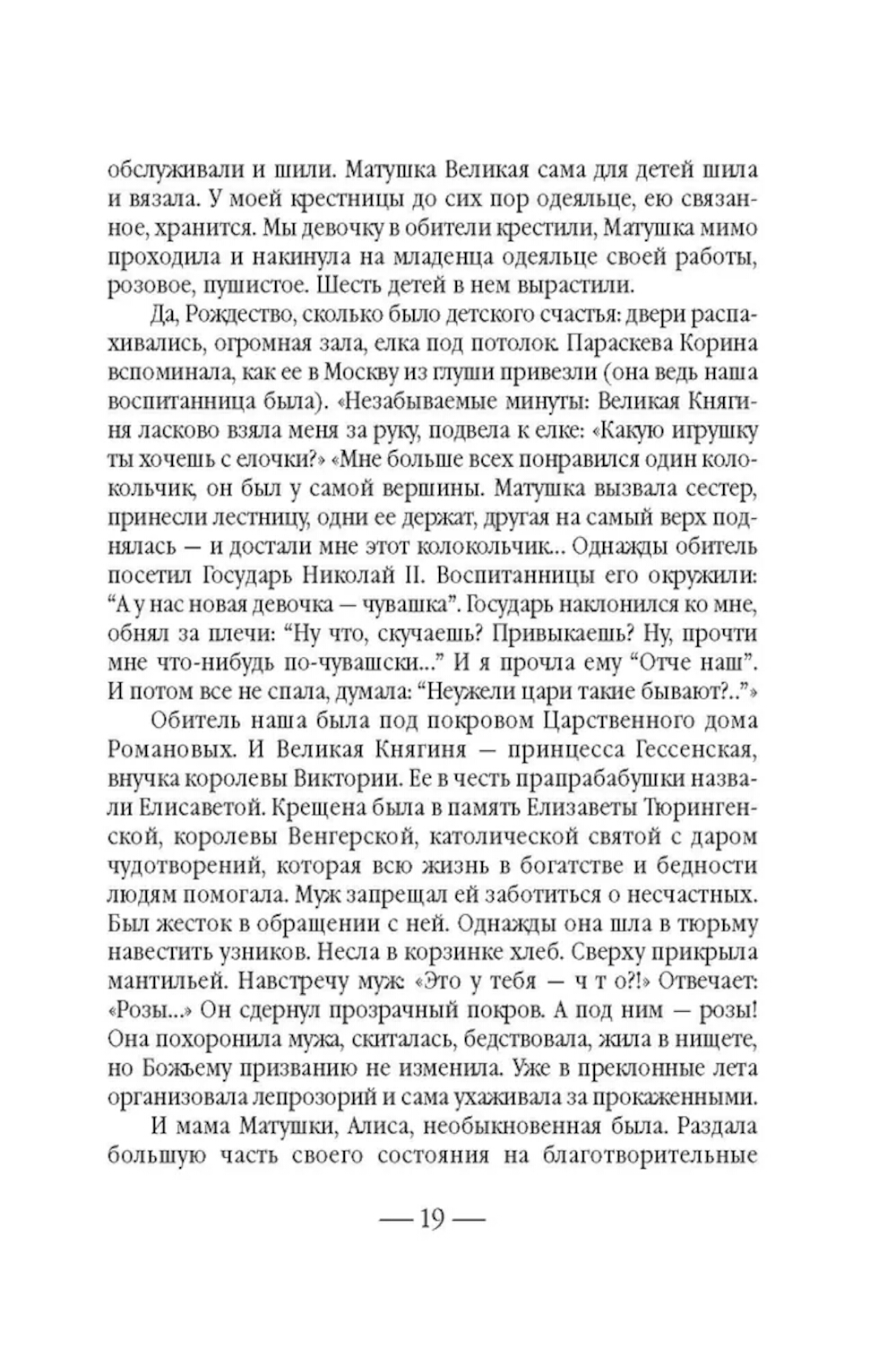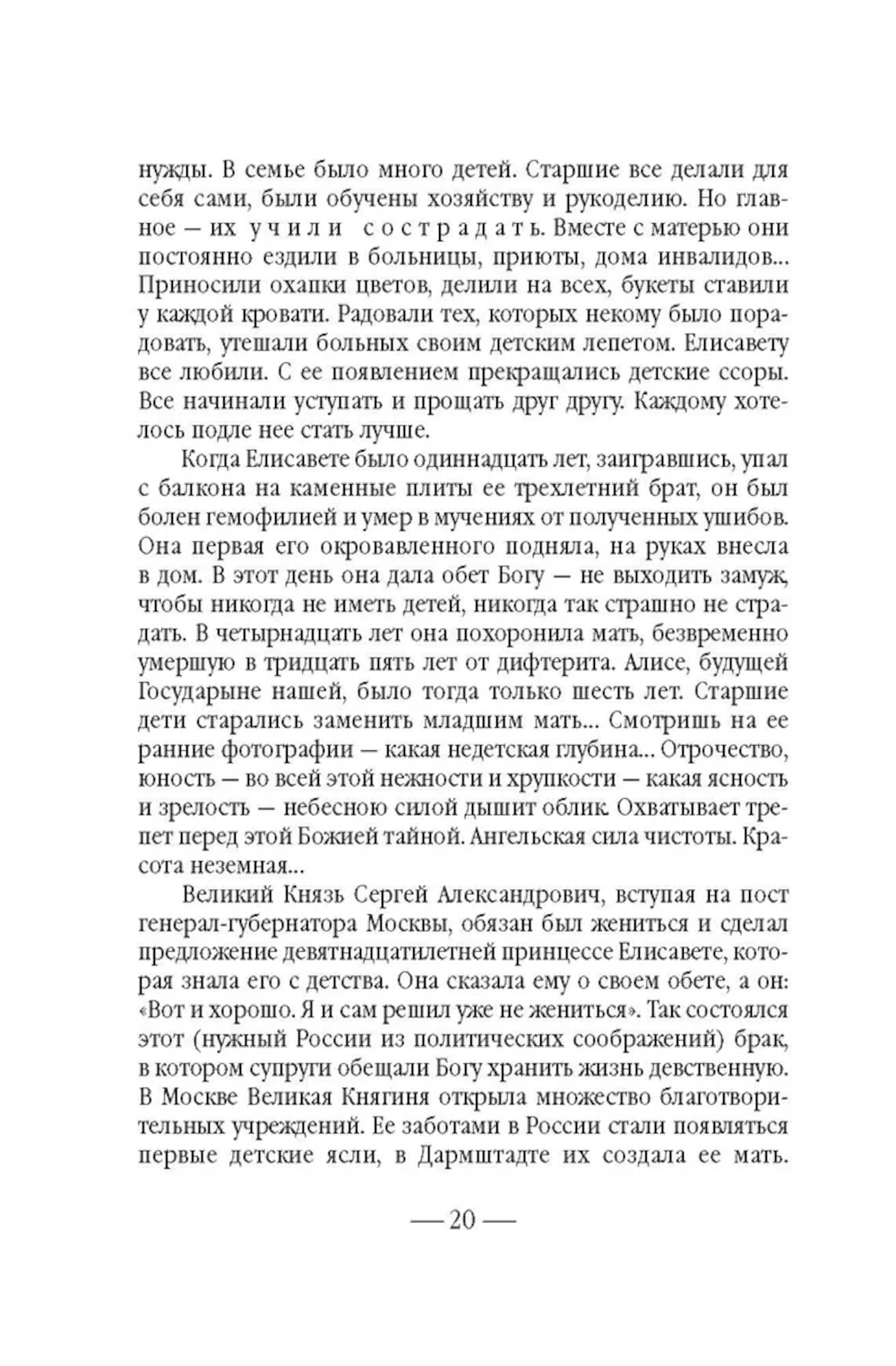 Не всякому поколению суждено встретить на своем пути такой благословенный дар неба, каким явилась Великая Княгиня Елисавета Феодоровна... После смерти супруга - Великого Князя Сергея Александровича Романова, убитого в 1905 году террористом Каляевым, - она основала в Замоскворечье, на Большой Ордынке, первую в России обитель милосердия. В ней разместились бесплатные больница, амбулатория, аптека и столовая для бедных, приют для девочек-сирот, общежитие для сестер, два храма, воскресная школа и обширная библиотека. После революции Великая Княгиня отказалась покинуть Россию, была арестована и 18 июля 1918 года живьем сброшена в шахту близ города Алапаевска. Созданная ею Марфо-Мариинская обитель милосердия просуществовала до 1926 года. Возрождение обители началось в 1992 году, когда постановлением столичного правительства архитектурный комплекс был передан Московской Патриархии. Судя по воспоминаниям, которые оставила нам последняя настоятельница Марфо-Мариинской обители и которые вошли в эту книгу, матушке Надежде повезло, - она близко знала Елисавету Феодоровну. Когда монахиню спросили о том, какую добродетель Елисавета Феодоровна считала важной, та ответила: «Милосердие». Эта книга посвящена главному делу жизни святой преподобномученицы, Великой Княгини Елисаветы - обители, которая и сегодня зовет служить милосердию каждого из нас - каждого живущего на земле человека.| Издательство | Сибирская благозвонница** |