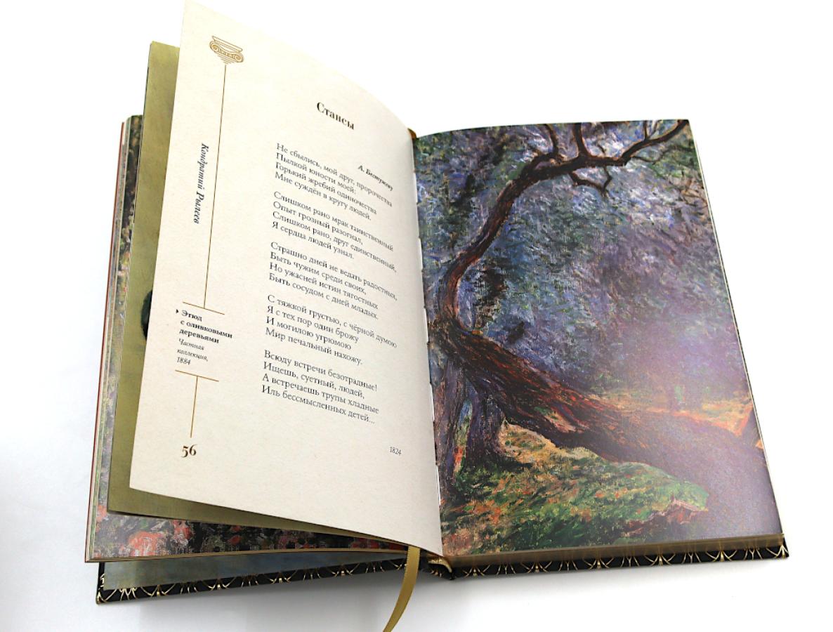 Эксклюзивное подарочное издание включает три книги русской поэзии: «Золотой век. Избранное» с иллюстрациями Клода Моне (1840-1926), «Серебряный век. Избранное» с иллюстрациями Винсента Ван Гога (1853-1890), «Любовная лирика. Избранное» с иллюстрациями Густава Климта (1862-1918). В коллекции представлено более 290 избранных стихотворений 45 великих русских поэтов Золотого и Серебряного веков, проиллюстрированных 354 картинами гениальных художников импрессионизма, постимпрессионизма и модерна, которые эстетично дополняют лирику, придавая ей визуальную глубину, и погружают читателя в уникальную атмосферу настоящего искусства.| Издательство | АСТ |