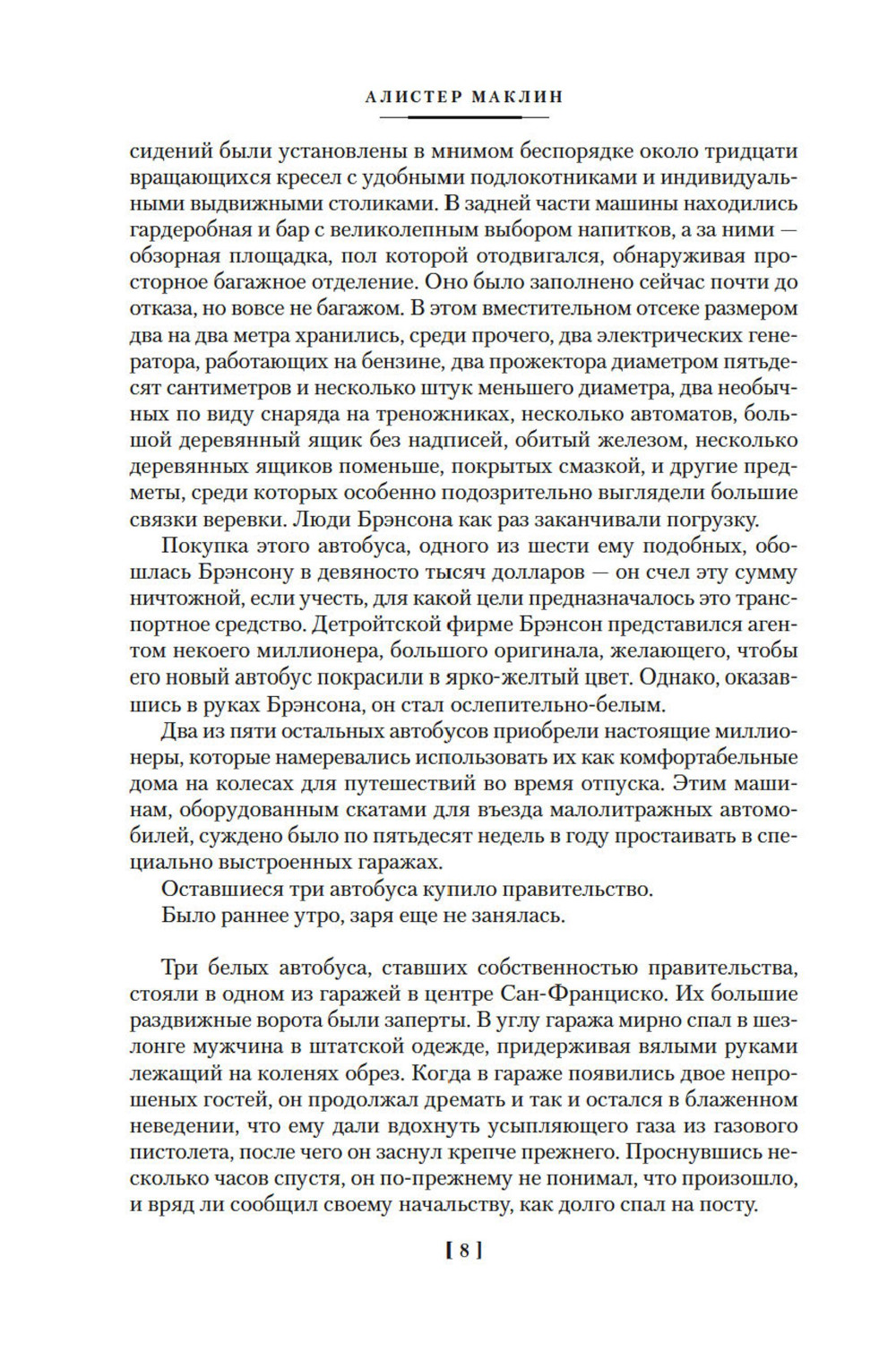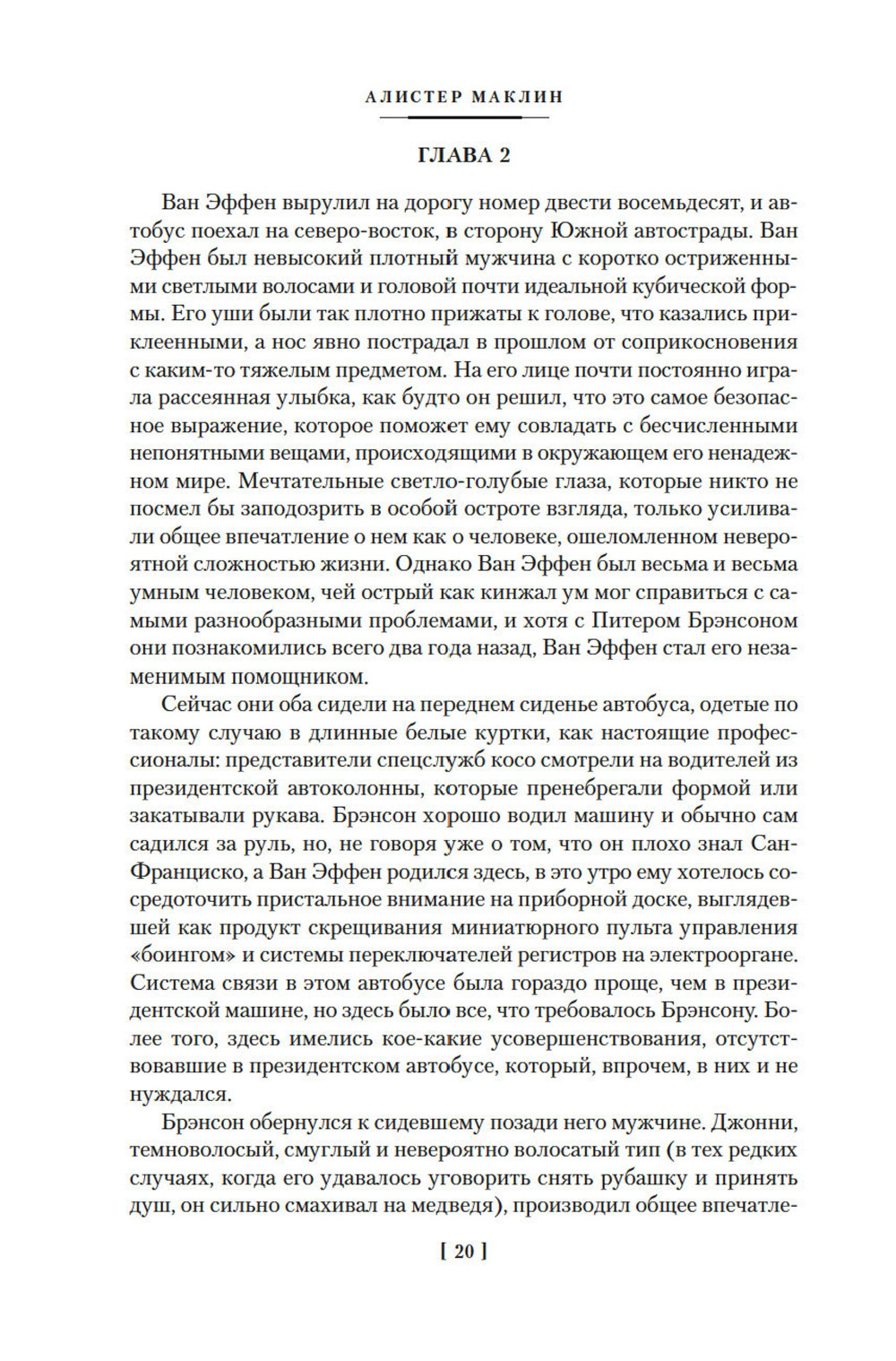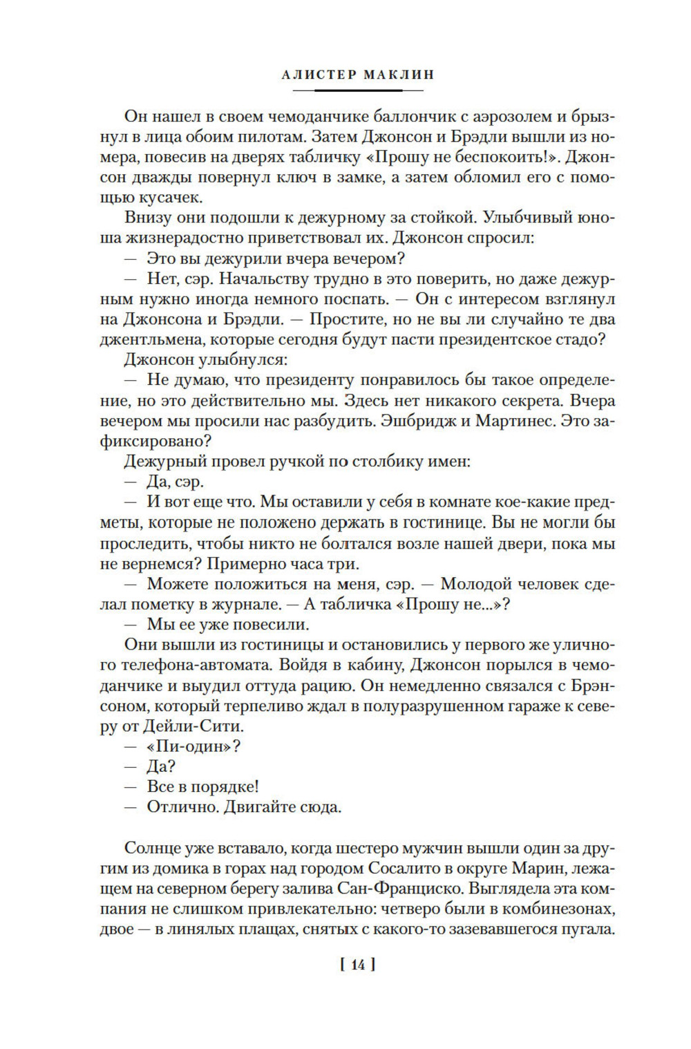 Алистер Маклин (1922-1987) - британский писатель, автор 28 остросюжетных романов и приключенческих рассказов, сценарист. Его имя широко известно читателям всего мира. Книги Маклина разошлись тиражом более 150 миллионов экземпляров, по его романам, сценариям и сюжетам было снято 18 фильмов. В 1983 году Университет Глазго присвоил писателю степень доктора литературоведения. Герои Маклина живут и побеждают по всему земному шару, «от коммунистической Венгрии и Мексиканского залива до Сингапура, юга Франции, Сан-Франциско, Нидерландов и Северного Ледовитого океана» (kirkusreviews. com). Флагман этого сборника - роман «Золотые Ворота». Одноименный мост в Сан-Франциско, чудо инженерной мысли, считается неприступным, с точки зрения даже бдительных фэбээровцев. Особенно когда по нему проезжает президентский кортеж. Но для плохих парней, желающих сорвать банк, нет ничего невозможного... Возглавляющий банду фанатик одержим идеей спровоцировать колоссальное землетрясение и утопить Золотой штат в океане («Прощай, Калифорния!»). Власти расписываются в собственном бессилии. Кто остановит репетицию конца света?.. Риск путешествия по джунглям Амазонии может быть оправдан, если цель - поиски древней цивилизации. Или похищенных сокровищ. Или самих похитителей («Река Смерти»). В романе «Цирк» фокусника с выдающимися способностями вербует ЦРУ, чтобы с его помощью узнать секретную формулу антивещества.