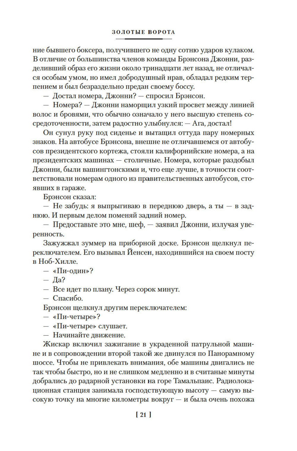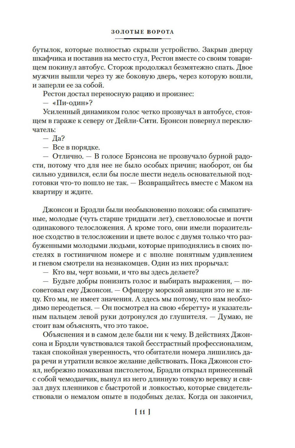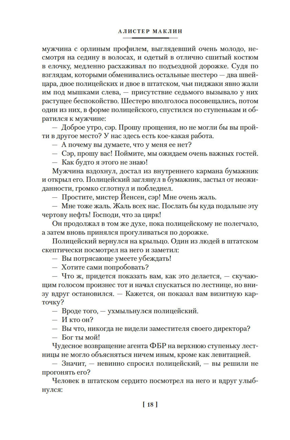 Алистер Маклин (1922-1987) - британский писатель, автор 28 остросюжетных романов и приключенческих рассказов, сценарист. Его имя широко известно читателям всего мира. Книги Маклина разошлись тиражом более 150 миллионов экземпляров, по его романам, сценариям и сюжетам было снято 18 фильмов. В 1983 году Университет Глазго присвоил писателю степень доктора литературоведения. Герои Маклина живут и побеждают по всему земному шару, «от коммунистической Венгрии и Мексиканского залива до Сингапура, юга Франции, Сан-Франциско, Нидерландов и Северного Ледовитого океана» (kirkusreviews. com). Флагман этого сборника - роман «Золотые Ворота». Одноименный мост в Сан-Франциско, чудо инженерной мысли, считается неприступным, с точки зрения даже бдительных фэбээровцев. Особенно когда по нему проезжает президентский кортеж. Но для плохих парней, желающих сорвать банк, нет ничего невозможного... Возглавляющий банду фанатик одержим идеей спровоцировать колоссальное землетрясение и утопить Золотой штат в океане («Прощай, Калифорния!»). Власти расписываются в собственном бессилии. Кто остановит репетицию конца света?.. Риск путешествия по джунглям Амазонии может быть оправдан, если цель - поиски древней цивилизации. Или похищенных сокровищ. Или самих похитителей («Река Смерти»). В романе «Цирк» фокусника с выдающимися способностями вербует ЦРУ, чтобы с его помощью узнать секретную формулу антивещества.