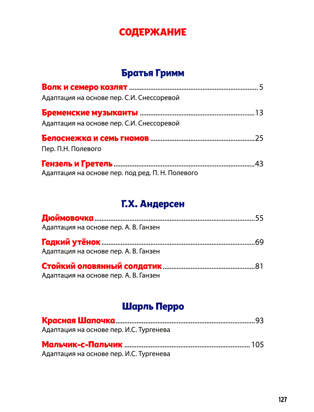 | Автор/составитель | Перро Шарль, Гримм Якоб и Вильгельм, Андерсен Ханс Кристиан |