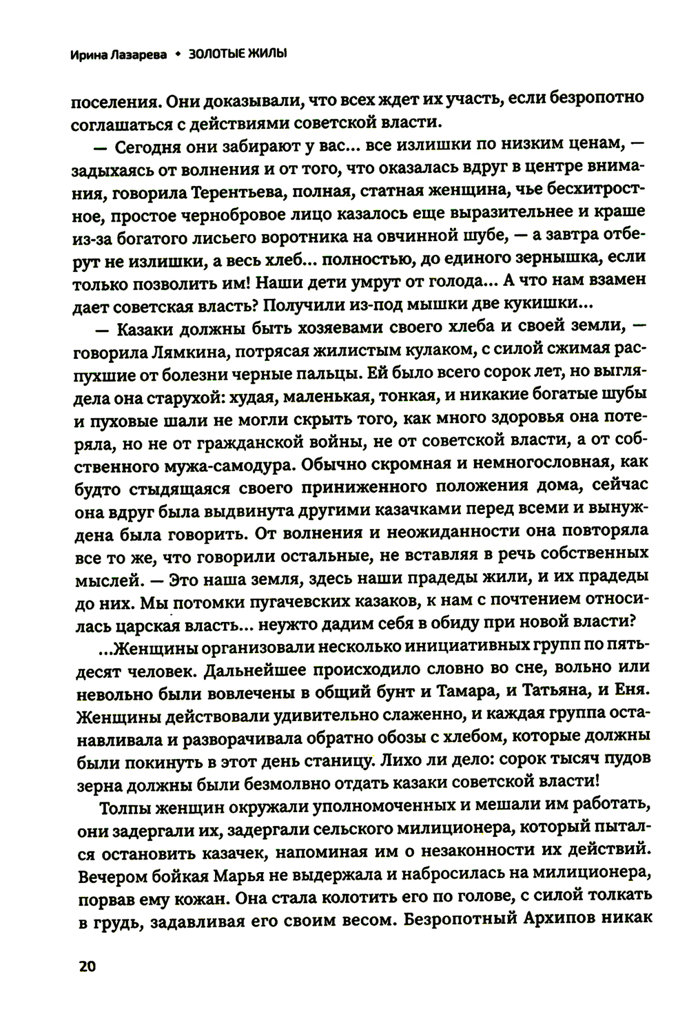 В основу романа легли события, происходившие в 1930-е годы на Урале и в Беларуси. Когда Советскому Союзу запретили импорт техники в обмен на золото, зерно стало новой валютой, и самоотверженный «золотой» труд колхозников, вытягивающий из них все жилы, оплатил индустриализацию державы. Произведение богато событиями и характерами. Коллективизация, раскулачивание, механизация колхозов, индустриализация, поднятие золотодобычи на Урале, вредительство и репрессии - водоворот событий закручивает судьбы героев так, что им волей-неволей приходится задуматься о значении великих перемен для страны. Пять семей, неодинаково относящихся к советской власти, по-новому переживают свою любовь к родной земле, к которой приросли корнями намного крепче, чем полагали. Вспыхнувший в одной из деревень Урала казацкий бунт влечет суровые последствия для главных героев и вызывает множество вопросов: откуда появились подстрекатели бунта и с какой целью? как им удалось уйти от наказания и исчезнуть из записей в материалах следствия? Главные герои, Агафья Ермолина и Семен Новиков, встают перед тяжелым выбором: искренняя и всепоглощающая любовь или долг. Что выберут они и можно ли обратить решение вспять?..| Издательство | Феникс |