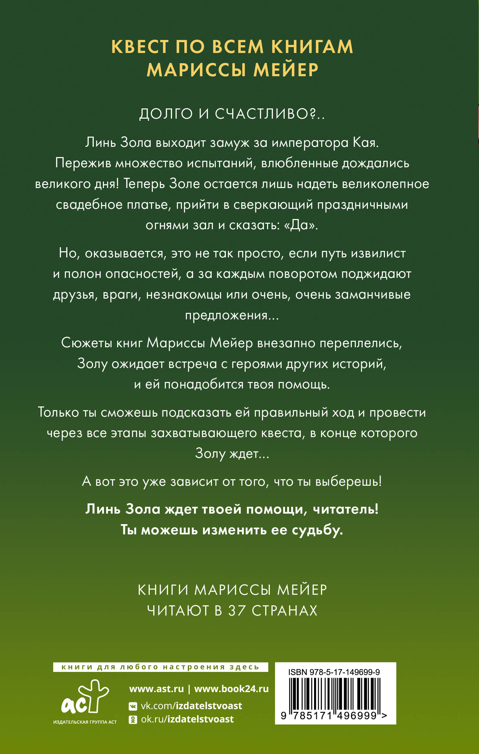 - Квестбук по книгам Мариссы Мейер! - Долгожданное продолжение полюбившейся истории! - Зола переносится в миры других книг Мариссы Мейер: «Отступники», «Мгновенная карма», «Позолота» и, конечно же, «Лунные Хроники». - От автора «Лунных Хроник» и бестселлеров The New York Times! Книги Мариссы Мейер читают в 37 странах! - Линь Зола из «Лунных Хроник. Золушка» ждет твоей помощи, читатель! Ты можешь изменить ее судьбу!| Издательство | ИЗДАТЕЛЬСТВО "АСТ" |