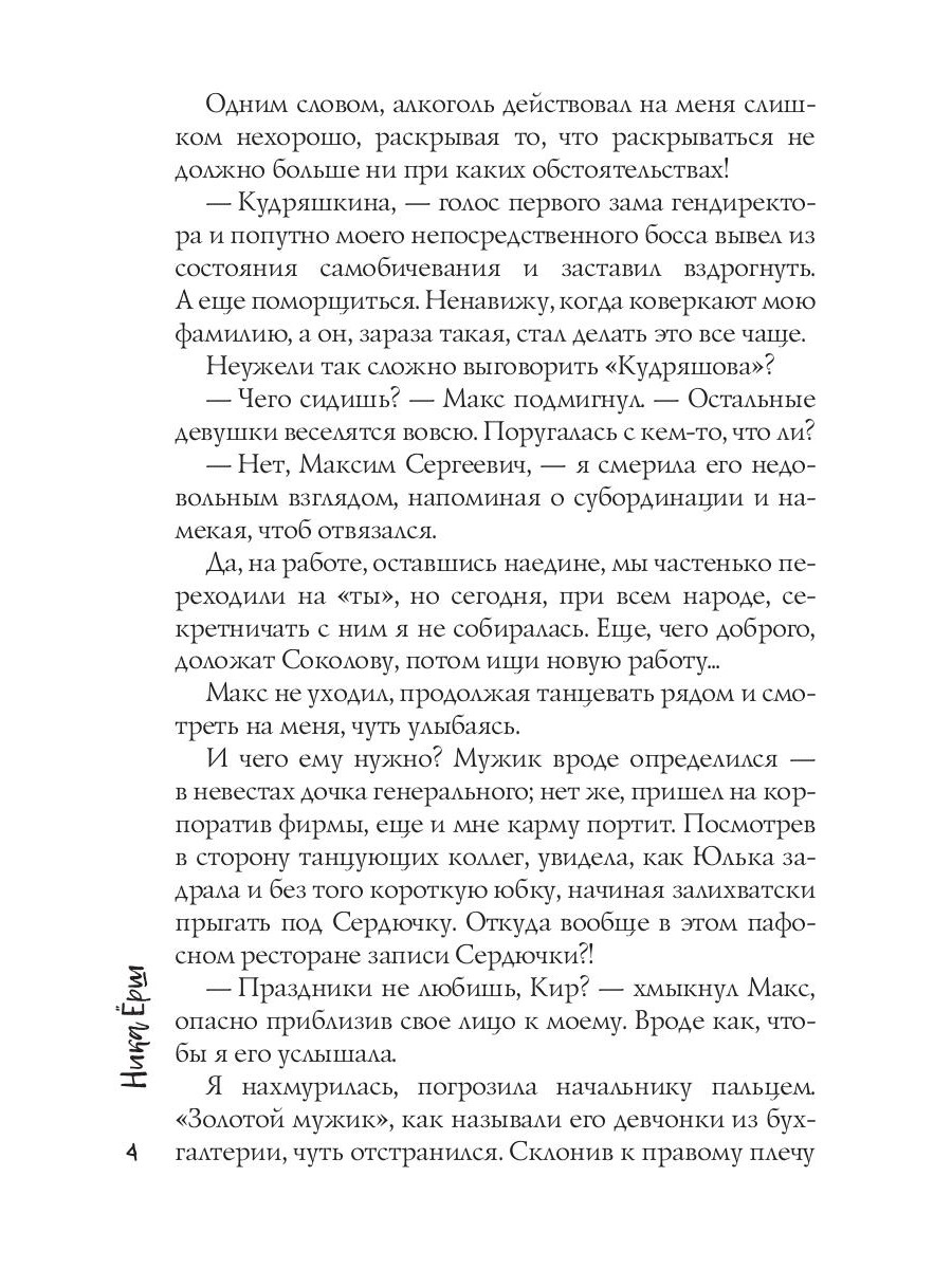 Кира - против служебных романов, алкоголя и несерьёзного отношения к работе. К тридцати годам она чётко расставила приоритеты, решив для себя самое главное: обходить стороной случайные связи и строить карьеру. Серьёзная, умная, целеустремлённая - такой она считала себя... ровно до того момента, как проснулась в постели собственного начальника.