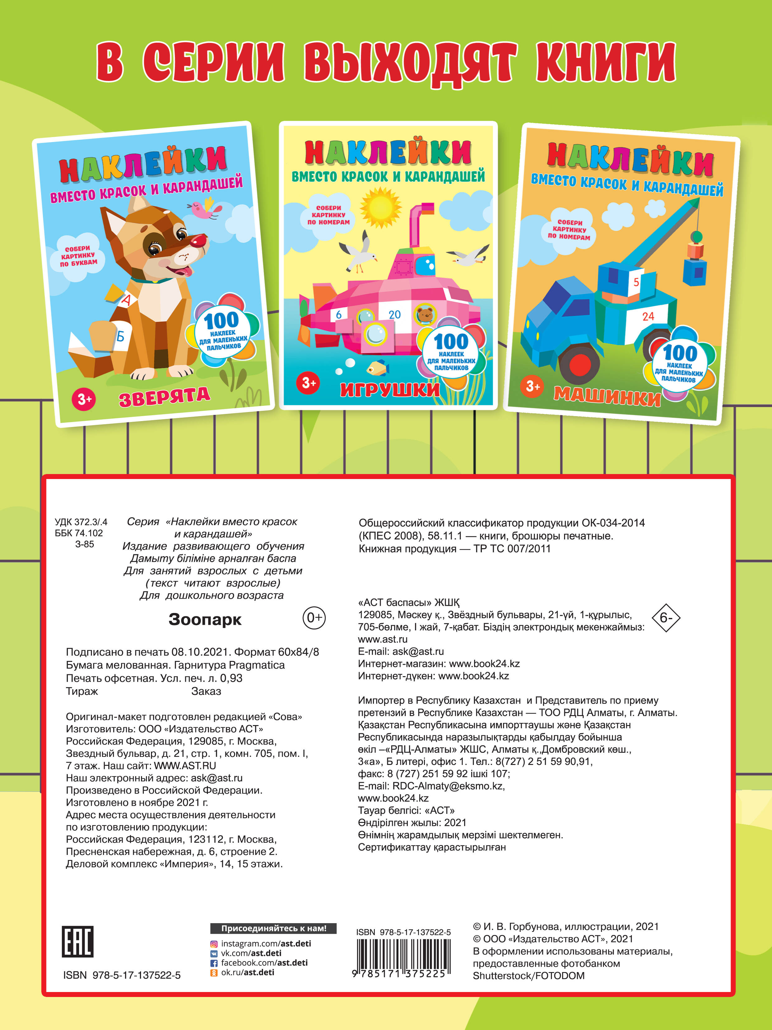 О чем эта книга В новой серии книг «Наклейки вместо красок и карандашей» - игровые задания с геометрическими стикерами, необыкновенно популярные во всем мире. В замечательной книжке ребята увидят обитателей зоопарка, которых можно раскрасить стикерами, подобрав наклейки по номерам или по буквам алфавита. Создать картинку, «раскрасив» ее стикерами, - увлекательное занятие на развитие логики, памяти, внимания, мелкой моторики. Кому эта книга будет интересна Книжка для всех, кто любит рисовать и своими руками создавать коллажи из наклеек. Каковы особенности этой книги Более 100 наклеек для создания ярких классных картинок это: • Очень интересная и полезная игра для детей. • Уникальный метод развития мелкой моторики, логического и пространственного мышления. • Ребенок сможет своими руками сложить мозаику, шаг за шагом приклеивая на «зашифрованное» поле рисунка фигурки-наклейки. • Интересные задания помогут друзьям не только интересно провести время, но и проявить фантазию, креатив и наблюдательность. Рисуем наклейками, развиваем интеллект, запоминаем цифры и буквы алфавита!| Издательство | ИЗДАТЕЛЬСТВО "АСТ" |