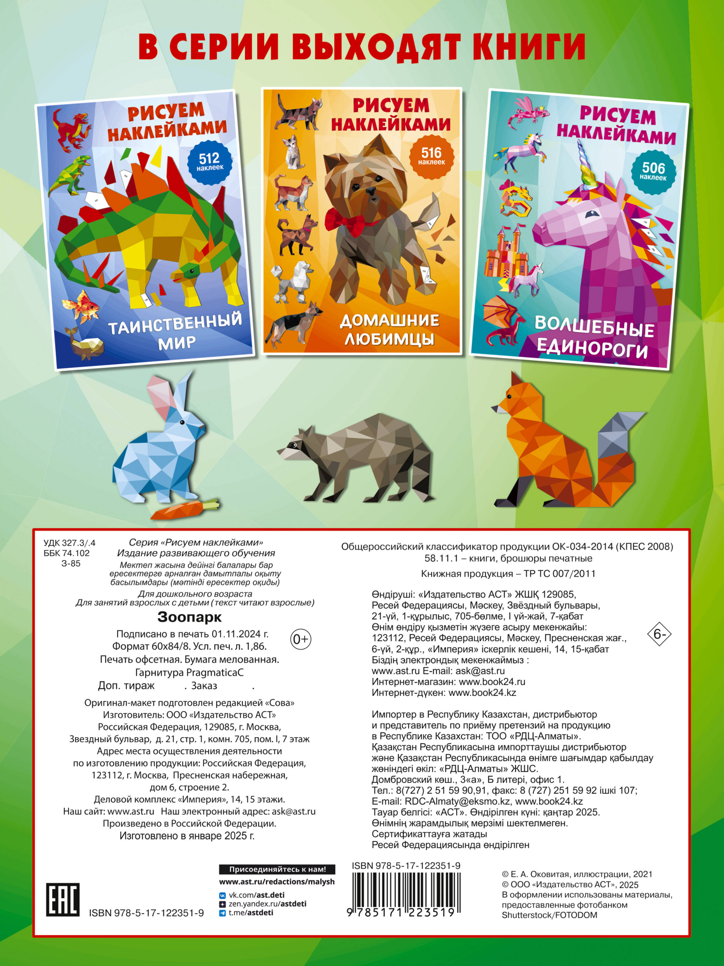 В новой серии книг «Рисуем наклейками» - игровые задания с геометрическими стикерами, необыкновенно популярные во всем мире. В уникальной книжке ребята увидят обитателей зоопарка, которых можно раскрасить стикерами, подобрав наклейки по номерам. Юным художникам обязательно понравятся интересные задания на развитие логики, памяти, внимания, мелкой моторики. Книжка для всех, кто любит рисовать и своими руками создавать коллажи из наклеек. • Более 200 наклеек для создания ярких классных 3D-картинок это: • Очень интересная и полезная игра для детей. • Уникальный метод развития мелкой моторики, логического и пространственного мышления. • Ребенок сможет своими руками сложить мозаику, шаг за шагом приклеивая на «зашифрованное» поле рисунка фигурки-наклейки. • Интересные задания помогут друзьям не только интересно провести время, но и развить воображение, творческое мышление, внимание, сообразительность. Рисуем наклейками, развиваем логику, внимание, запоминаем цифры!| Издательство | ИЗДАТЕЛЬСТВО "АСТ" |