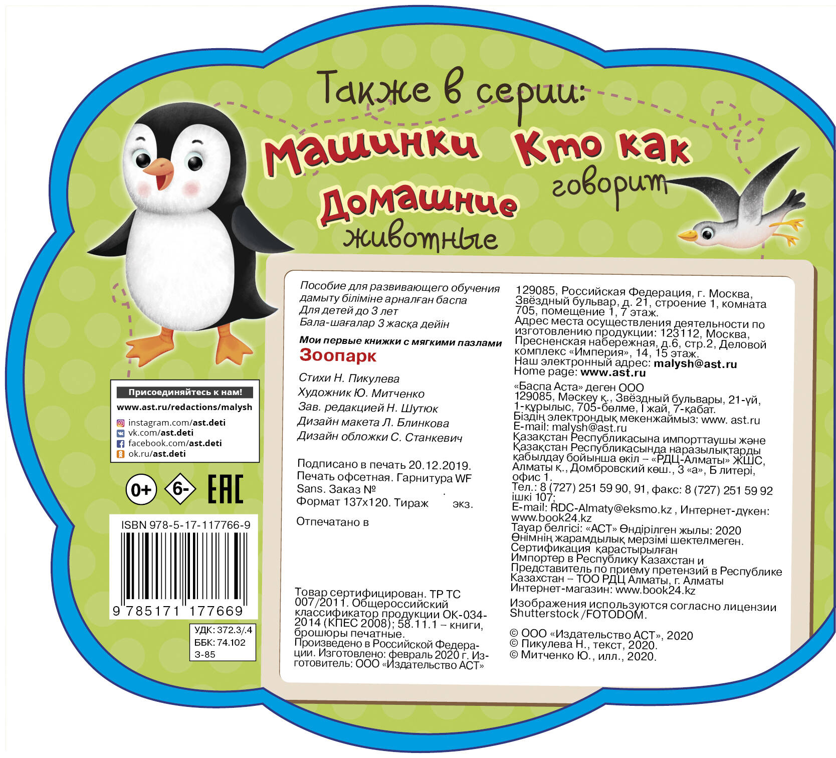 Книжка на мягком материале EVA с разноцветными страничками, скругленными уголками и веселыми загадками и картинками разработана специально для самых маленьких начинающих читателей. Малышу предстоит не только разгадать загадку, но и собрать небольшой пазл, состоящий из 4 мягких частей. Игра и обучение - в одной книге! - яркие картинки и загадки про диких и домашних животных и про машинки; - мягкий и безопасный материал EVA, об который невозможно уколоться или порезаться, который можно грызть и тянуть и даже протереть, если испачкался; - пазлик, состоящий из 4 частей, который поможет развить с малышом мелкую моторику, внимание и память.| Издательство | Издательство "АСТ" |