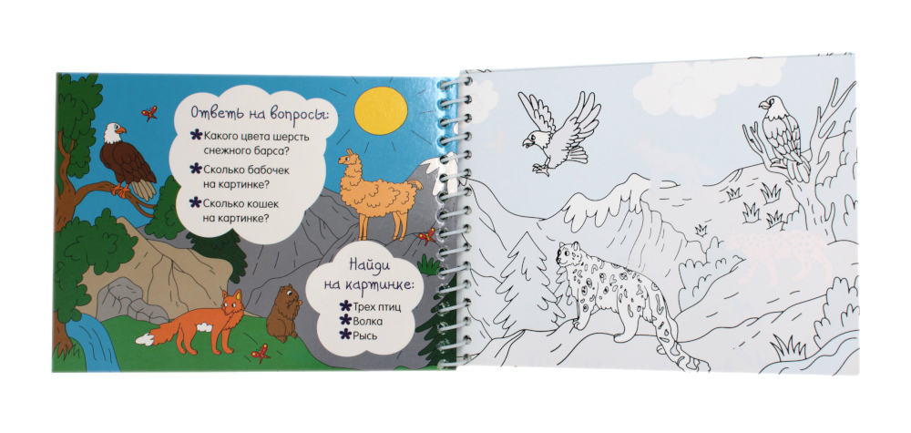 В этой раскраске картинки проявляются с помощью волшебного водного фломастера. Наполните его водой по инструкции и начинайте водить им по белой стороне раскраски. На чёрно-белых картинках нужно найти несколько предметов. Они спрятались. Найти их и ответить на другие вопросы (счет, буквы, цвета, формы) малыш сможет, только полностью раскрасив всю страничку! Когда страничка высохнет - она снова станет белой! И ее можно будет снова начать раскрашивать и выполнять задания!| Издательство | АСТ |