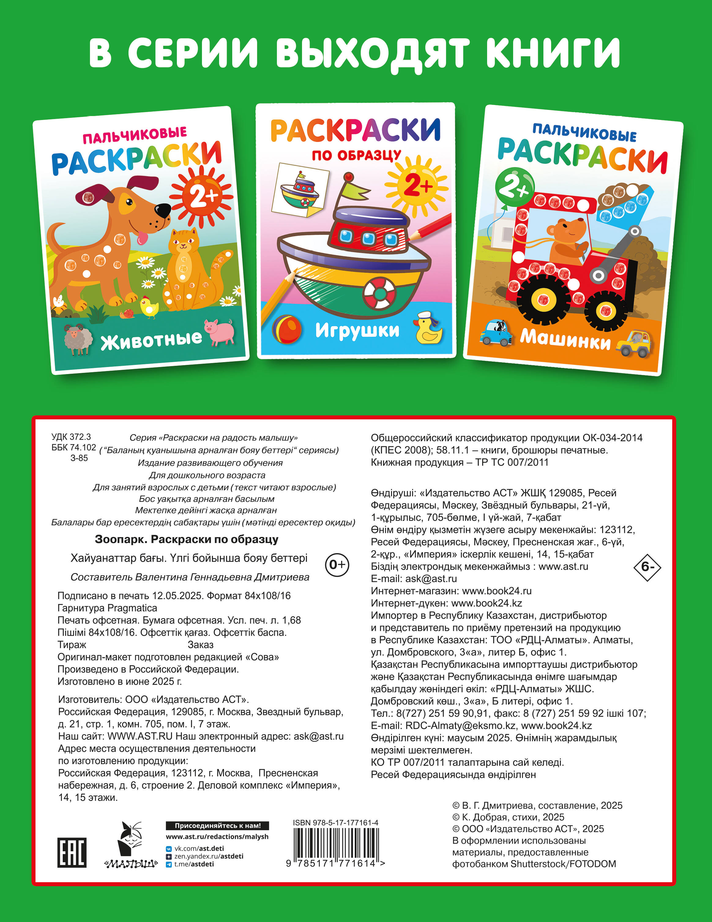 «Зоопарк. Раскраски по образцу» - всё для запуска речи и развития мелкой моторики: широкий цветной контур + рисование по образцу + весёлые, лёгкие в запоминании стихи. Новая книга серии «Раскраски на радость малышу» создана специально для раннего развития ребёнка. Через плотную бумагу не просвечивают даже самые яркие краски. Широкий цветной контур подскажет ребёнку, каким цветом можно раскрасить картинку, а рисование по образцу сделает процесс не только весёлым, но и полезным: малыш будет развивать мелкую моторику, образное мышление и художественный вкус - идеально для запуска речи малыша. Во время занятия ребёнок: • учится проявлять инициативу; • знакомится с окружающим миром, формирует познавательный интерес; • приобретает представление о предметах, их цвете, форме и размере; • тренирует память, концентрацию внимания; • развивает художественное восприятие. Яркие эмоции, радость от творчества и гордость за свои маленькие шедевры - с этой книгой каждый день будет наполнен открытиями! Подарите вашему ребёнку возможность учиться и развиваться через игру - выбирайте «Зоопарк. Раскраски по образцу» уже сегодня!| Издательство | Издательство "АСТ" |