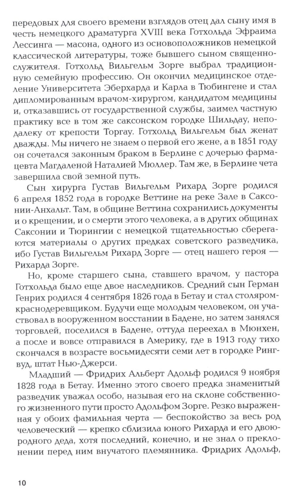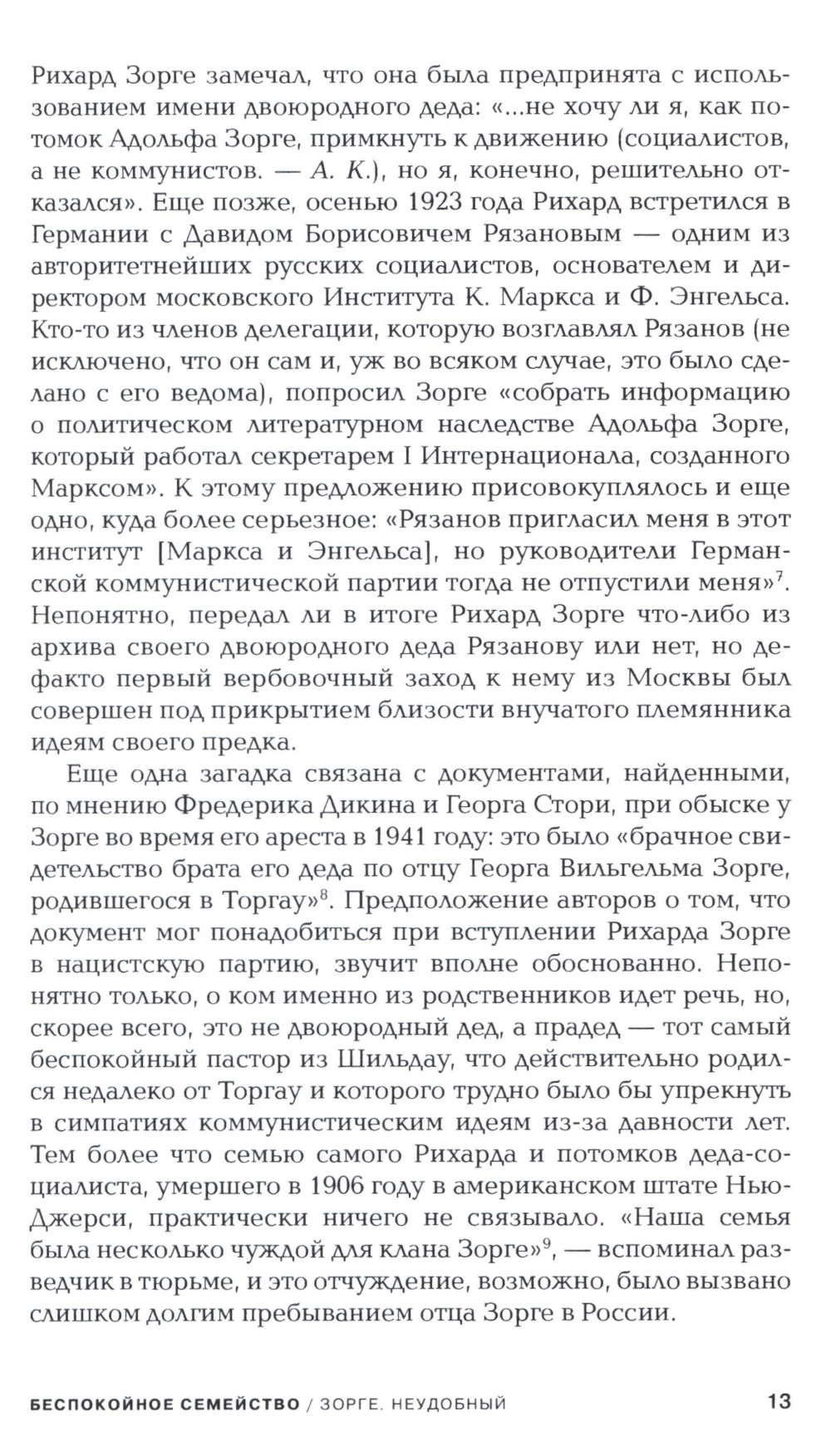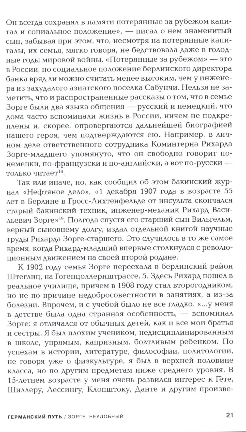 Зорге. Это слово переводится на русский язык как "беспокойство". Рихард Зорге - умный, талантливый, но неистовый в своей любви к свободе и в своем желании стать апостолом революции человек - всегда оставался источником беспокойства и неудобства для окружающих. Сжимающиеся рамки европейского подполья привели его в Коминтерн, откуда он был "вычищен" в… советскую военную разведку. На долгие годы Зорге стал там источником раздражения для своих начальников, делая все не так, как велели, но добиваясь при этом невиданных результатов. Даже его арест оказался неудобен для всех, и Японии, Германии, Советскому Союзу годами пришлось выдумывать небылицы про Зорге. В новой книге историка, лауреата премии ФСБ РФ Александра Куланова представлен беспристрастный, опирающийся на огромный массив документов рассказ о судьбе уникального человека, ставшего гордостью и героем нашей страны.| Издательство | Молодая гвардия |