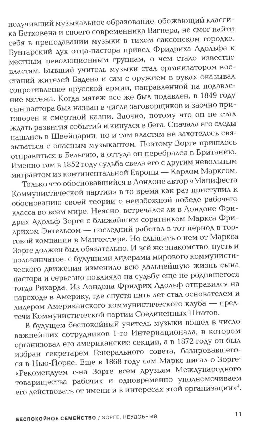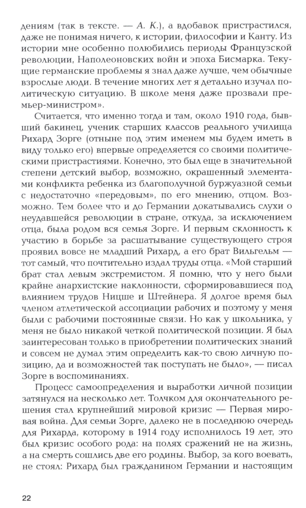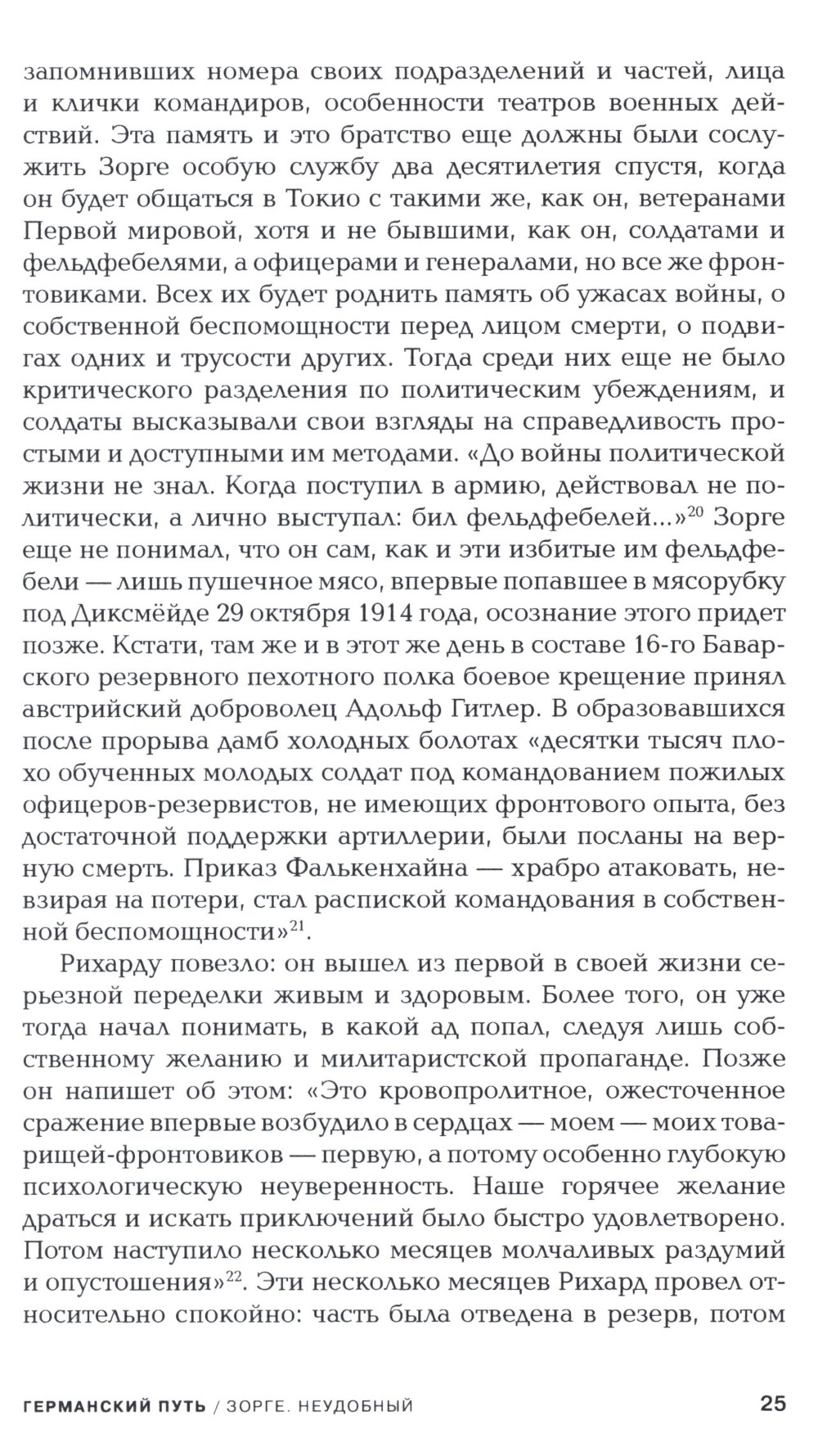 Зорге. Это слово переводится на русский язык как "беспокойство". Рихард Зорге - умный, талантливый, но неистовый в своей любви к свободе и в своем желании стать апостолом революции человек - всегда оставался источником беспокойства и неудобства для окружающих. Сжимающиеся рамки европейского подполья привели его в Коминтерн, откуда он был "вычищен" в… советскую военную разведку. На долгие годы Зорге стал там источником раздражения для своих начальников, делая все не так, как велели, но добиваясь при этом невиданных результатов. Даже его арест оказался неудобен для всех, и Японии, Германии, Советскому Союзу годами пришлось выдумывать небылицы про Зорге. В новой книге историка, лауреата премии ФСБ РФ Александра Куланова представлен беспристрастный, опирающийся на огромный массив документов рассказ о судьбе уникального человека, ставшего гордостью и героем нашей страны.| Издательство | Молодая гвардия |