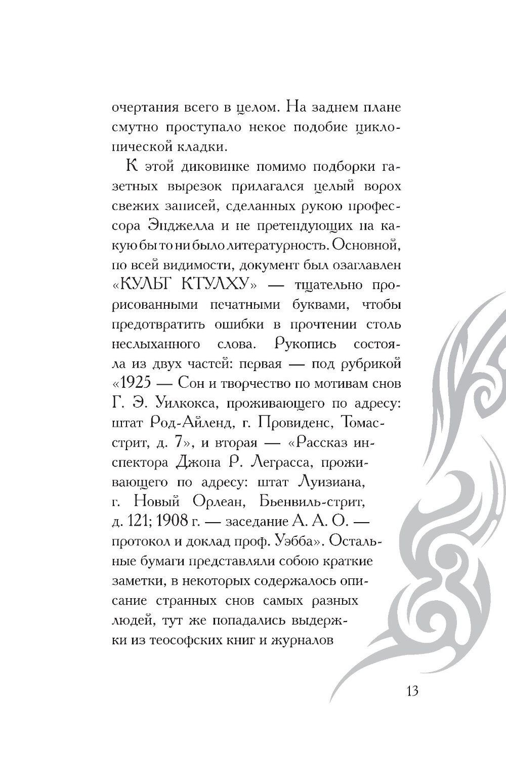 Говард Филлипс Лавкрафт, не издавший при жизни ни одной книги, позднее стал классиком жанра «ужасы», кумиром широкого круга читателей, включая утонченных интеллектуалов. Его талант признавали такие мастера, как Хорхе Луис Борхес и Стивен Кинг; рассказы много раз экранизировались, а само имя писателя стало нарицательным. «Зов Ктулху» - мистический триллер о скрывающемся в морской пучине сверхъестественном существе. Настанет день, когда монстр восстанет из вод, и мир содрогнется... Иллюстрированная классика серии «Black and White» - это не просто издания, а арт-объекты. Талантливые современные художники, вдохновленные произведениями знаменитых писателей, создают галерею прекрасных иллюстраций. Книги классика начинают звучать по-новому, а внеклассное чтение становится удовольствием. Прекрасный подарок подростку и всем любителям чтения.| Издательство | Аркадия |