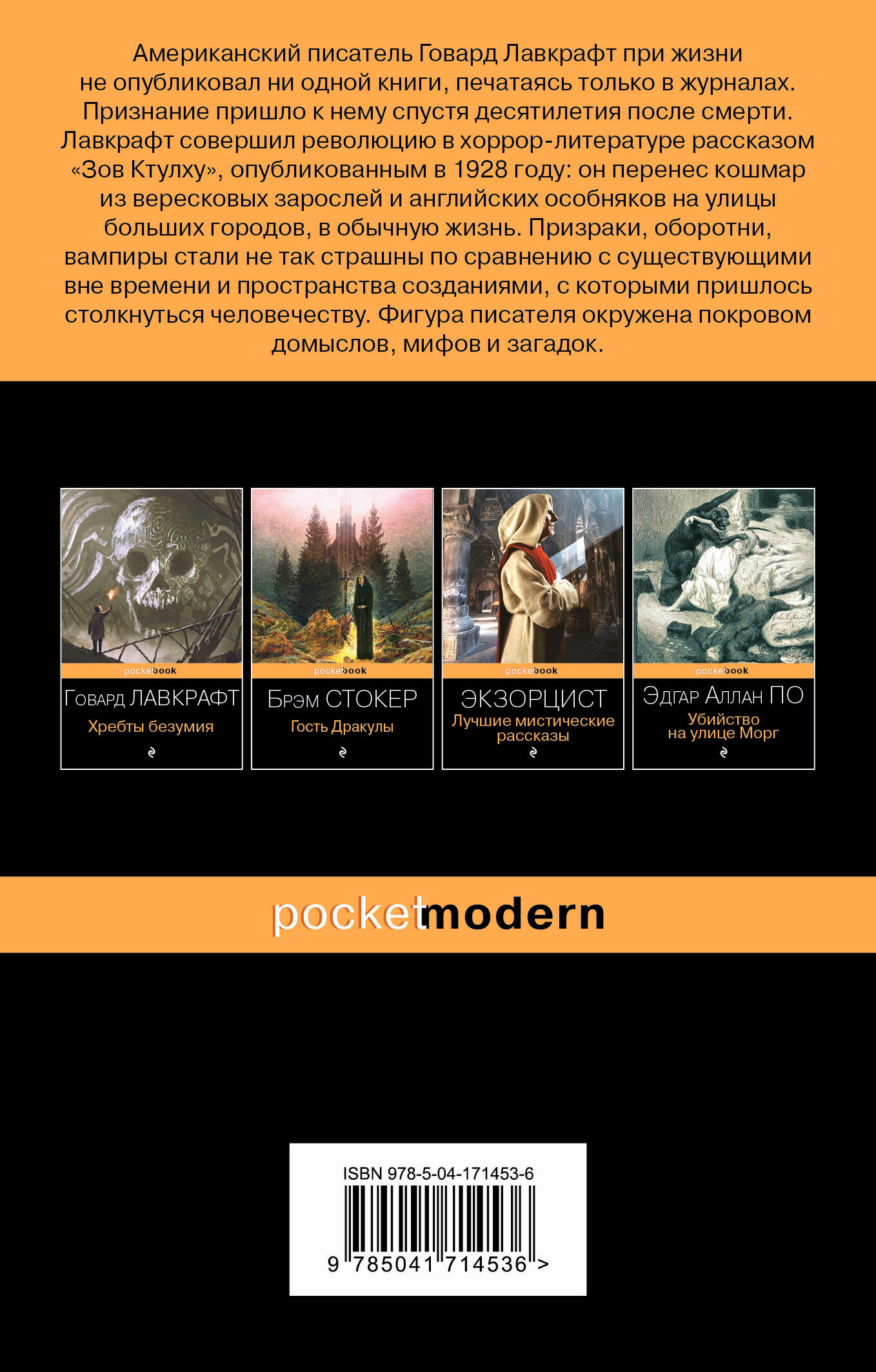 Имя Говарда Филлипса Лавкрафта прогремело на весь мир, как эталон литературы ужаса. Одаренный искусством изящной словесности, он писал о страшных тенях в углу и о том, что недоступно обычным смертным, а лишь избранным. Его современники и сегодняшние герои хоррор-историй отдают свою дань рассказам Лавкрафта. В сборник вошли Топ-10 рассказов Говарда Филлипса Лавкрафта. Подборка лучших произведений ужасов, которые сделали его тем самым великим и могучим повелителем жанра, - «Зов Ктулху», «Дагон», «Притаившийся ужас», «Данвичский кошмар» и др.| Издательство | ООО "Издательство "Эксмо" |