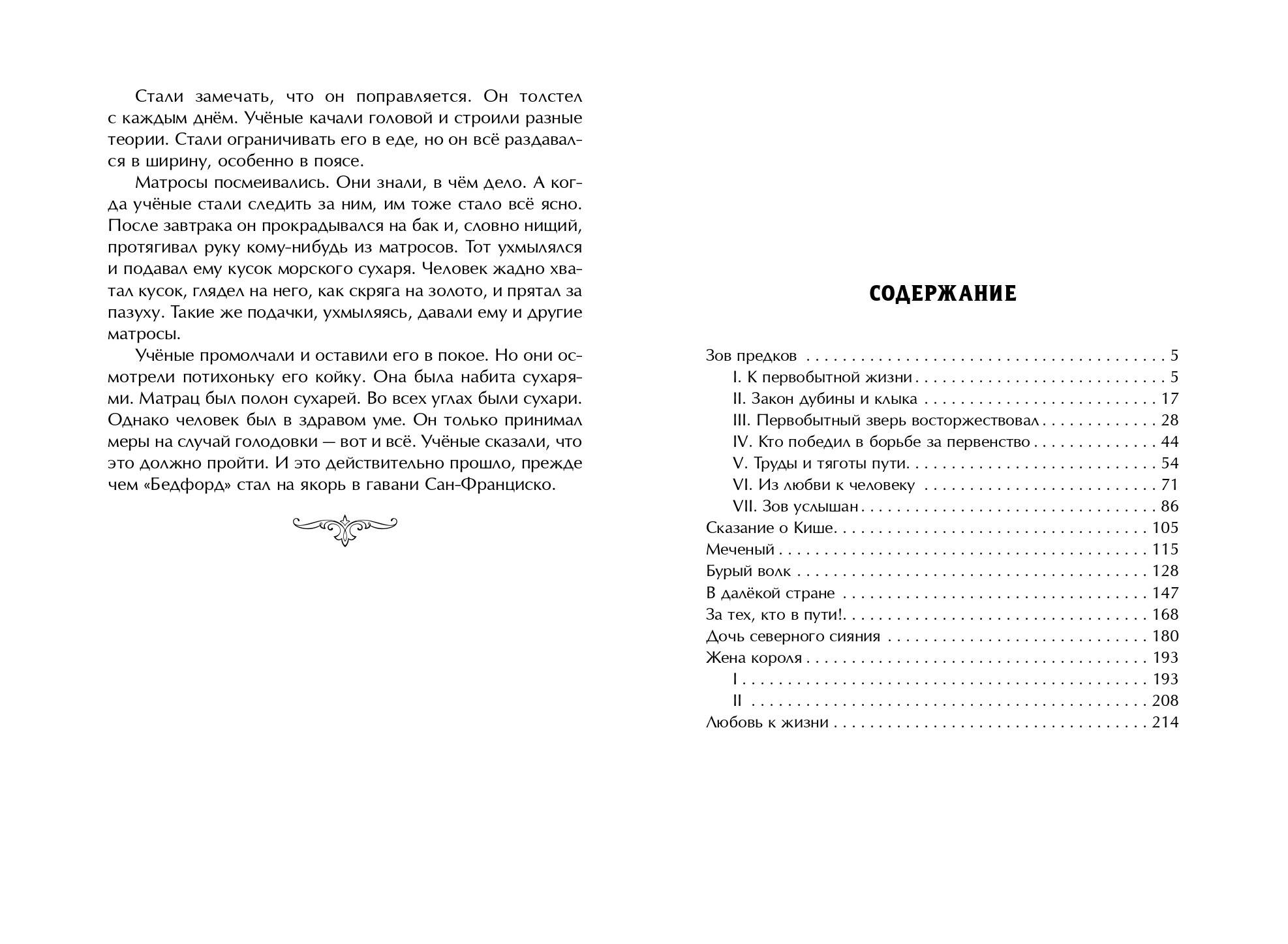 В книгу вошли «северные» произведения знаменитого американского писателя Джека Лондона. Повесть «Зов предков», а также восемь рассказов: «Сказание о Кише», «Меченый», «Бурый волк», «В далёкой стране», «За тех, кто в пути!», «Дочь северного сияния», «Жена короля» и «Любовь к жизни», - переносят читателя в далёкую страну под названием Север. Здесь правят свои законы, здесь живут совершенно особенные люди и животные, способные работать и выживать в тяжелейших условиях. Здесь, наконец, проходит граница между истиной и ложью, и всё встаёт на свои места. «Библиотека школьной классики» - элегантная, изящная серия книг, необходимых в каждом доме. Каждый том серии - это встреча с прекрасным, которая запомнится навсегда. Все книги серии имеют подарочное оформление: твёрдый переплёт с вырубкой и тиснением фольгой, белая бумага и чёткий удобочитаемый шрифт.| Издательство | ООО "Издательство "Эксмо" |