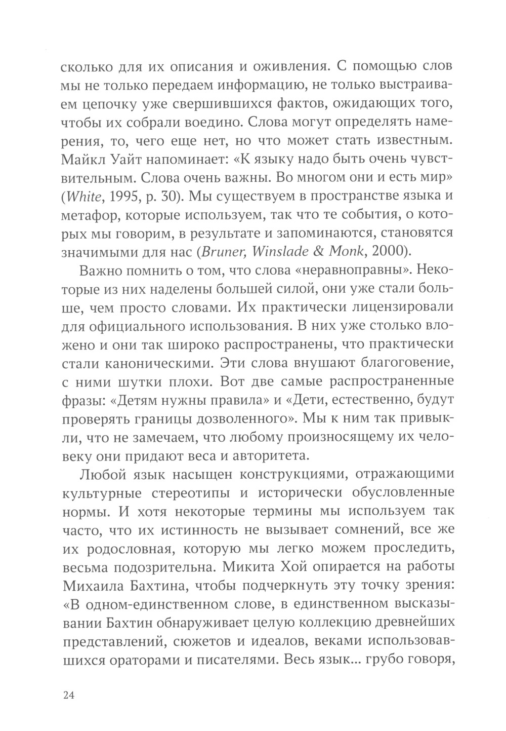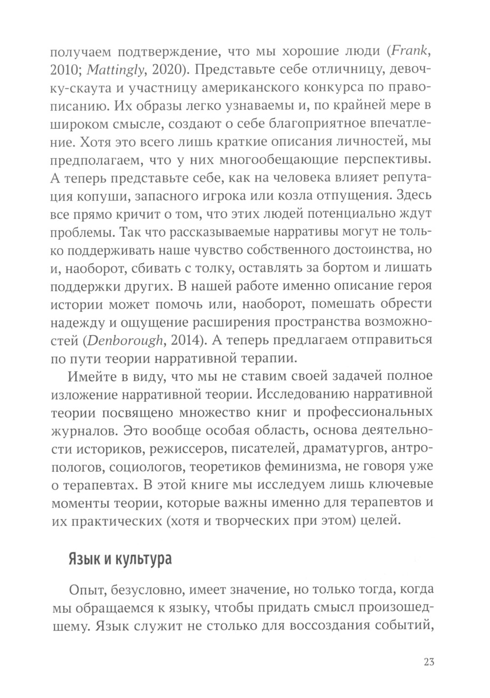 Что если воображение может быть таким же важным и необходимым условием терапевтической встречи, как, скажем, установление безопасной атмосферы? Что если допустить, что ресурс воображения настолько велик, что может помочь в разрешении самых разных проблем? Авторы, известные нарративные терапевты, предлагают смотреть на решение проблем сквозь призму творческого подхода, в первую очередь опираясь на возможности, ценности и умения самого ребенка, а не его родителей или терапевта. Ребенок таким образом становится героем создающейся истории, героем в прямом смысле - его достоинств и уникальных качеств достаточно для того, чтобы вступить в схватку с коварной и опасной проблемой. В книге разбираются ключевые моменты нарративной теории, этапы и способы выстраивания достаточно убедительной, интригующей истории, лайфхаки и особенности работы с той или иной проблемой. Книга будет полезна психологам, психотерапевтам, консультантам, а также всем, кто хочет заглянуть во внутренний мир ребенка и вдохновиться им.| Издательство | Генезис |