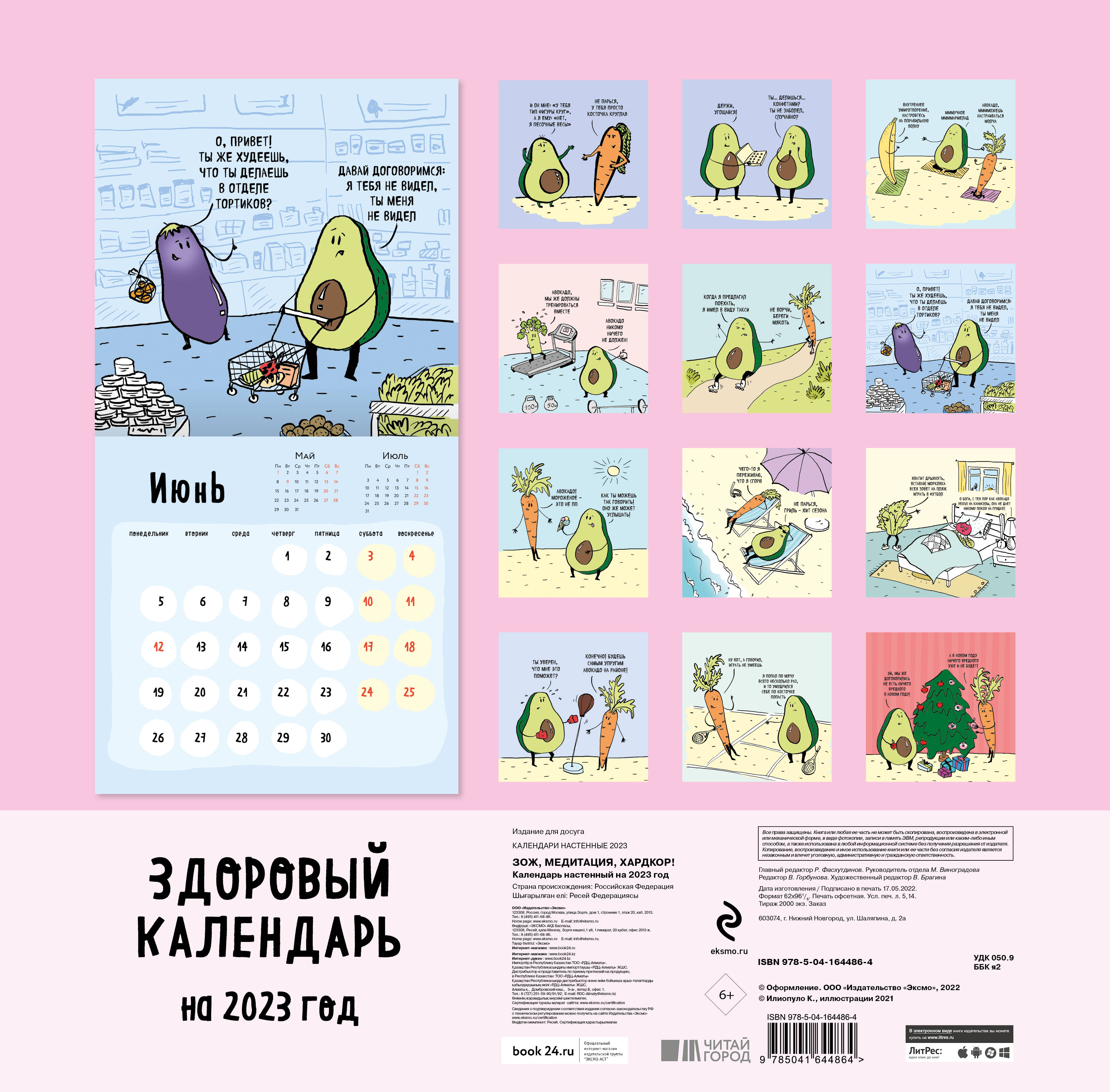 О серии: Наши настенные календари отличаются высоким качеством исполнения! Тщательно подобранные иллюстрации, напечатанные на глянцевой бумаге высочайшего качества, станут настоящим украшением дома, а в календарной сетке найдется место для ваших планов: большие клетки позволят делать записи и организовать свой год! В календаре также отмечены все государственные праздники. В серии настенных календарей издательства «ЭКСМО» каждый найдет тему по вкусу: великие художники, великолепные подборки с самыми знаменитыми произведениями искусства, легендарные кинематографические саги и игры, главные книжные авторы и бестселлеры, фотографии и иллюстрации любимых животных и многое-многое другое! О календаре: ЗОЖ, спорт, авокадо! Вот три главных слова для всех, кто хочет быть здоровым и активным. А это - специальный календарь для всех зожников! Хардкорные тренировки, подъемы на пробежку в 6 утра и апельсины вместо конфет - эти и другие жизненные ситуации разделят с вами герои календаря от художницы Карины Илиопуло. Заряжайтесь энергией и позитивом вместе с Авокадо и его друзьями! О календаре: Для тех, кто еще верит в ЗОЖ и находит в себе силы заниматься спортом. Технические параметры: - Тип календаря - настенный перекидной. - Год - 2023. - Календарная сетка - с разбивкой по месяцам. - Вид скрепления - скрепка. - Ширина - 30 см. - Высота - 30 см. - Внутренний блок - мелованная бумага 150 г/м2. - Подложка - плотный гофрокартон для поддержания формы. - Индивидуальная упаковка в плотный целлофановый пакет.| Издательство | Эксмо |