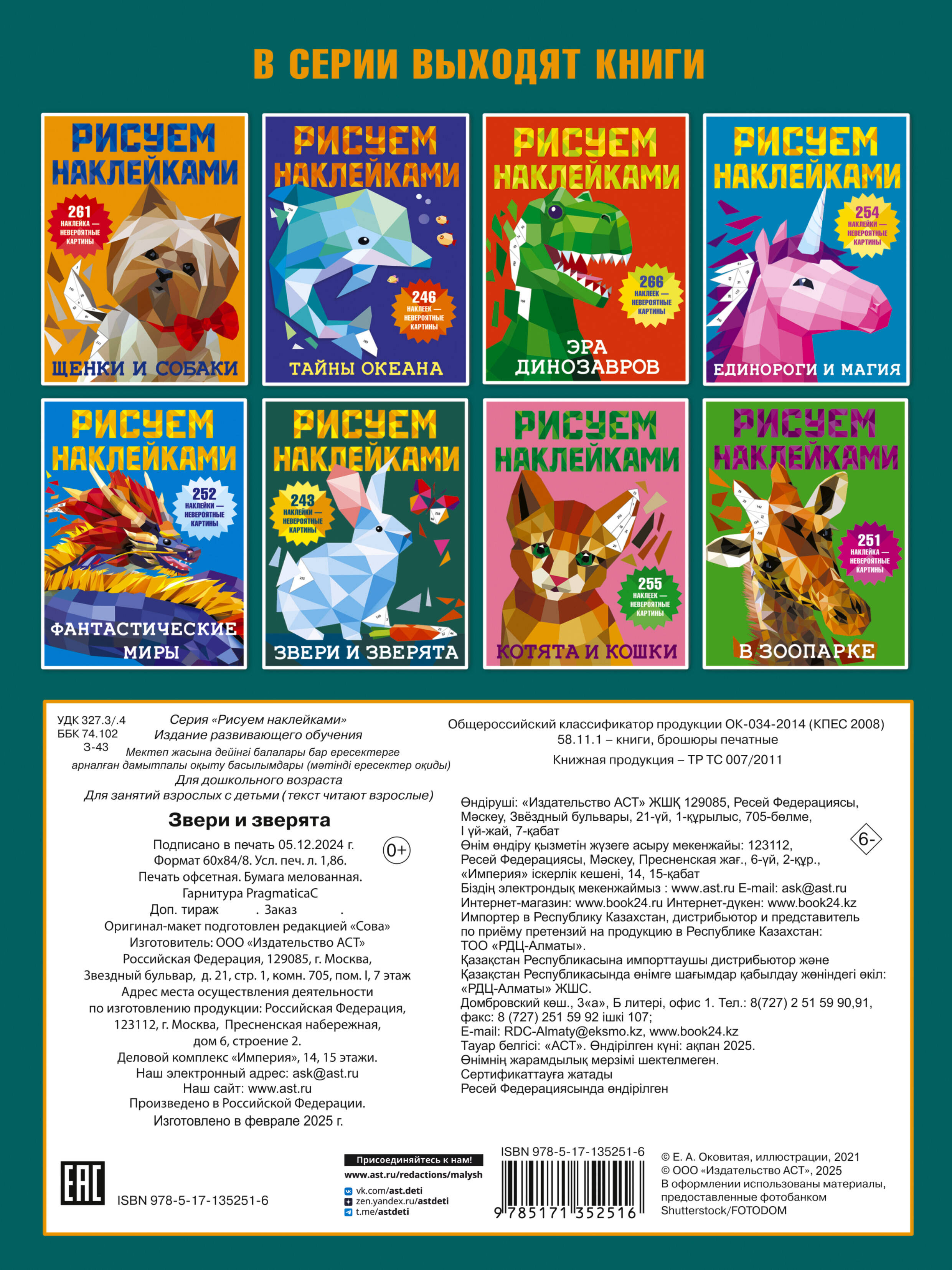 В новой серии книг «Рисуем наклейками» - игровые задания с геометрическими стикерами, необыкновенно популярные во всем мире. В уникальной книжке ребята увидят животных, которых можно раскрасить стикерами, подобрав наклейки по номерам. Юным художникам обязательно понравятся интересные задания на развитие логики, памяти, внимания, мелкой моторики. Книжка для всех, кто любит рисовать и своими руками создавать коллажи из наклеек. • Красочные иллюстрации + более 250 геометрических стикеров - отличная основа для творчества. • На каждой странице книги - цветной образец и контурная картинка, которую нужно «закрашивать» фигурками-наклейками. На каждую картинку потребуется более 60 стикеров. • Работа с наклейками - очень интересная и полезная игра, которая поможет раскрыть интеллектуальный и творческий потенциал ребенка, подарит множество положительных эмоций. • Каждая страница - яркое игровое поле. • Отличный тренажёр для развития мелкой моторики. Рисуем наклейками, развиваем логику, внимание, запоминаем цифры!| Издательство | ИЗДАТЕЛЬСТВО "АСТ" |