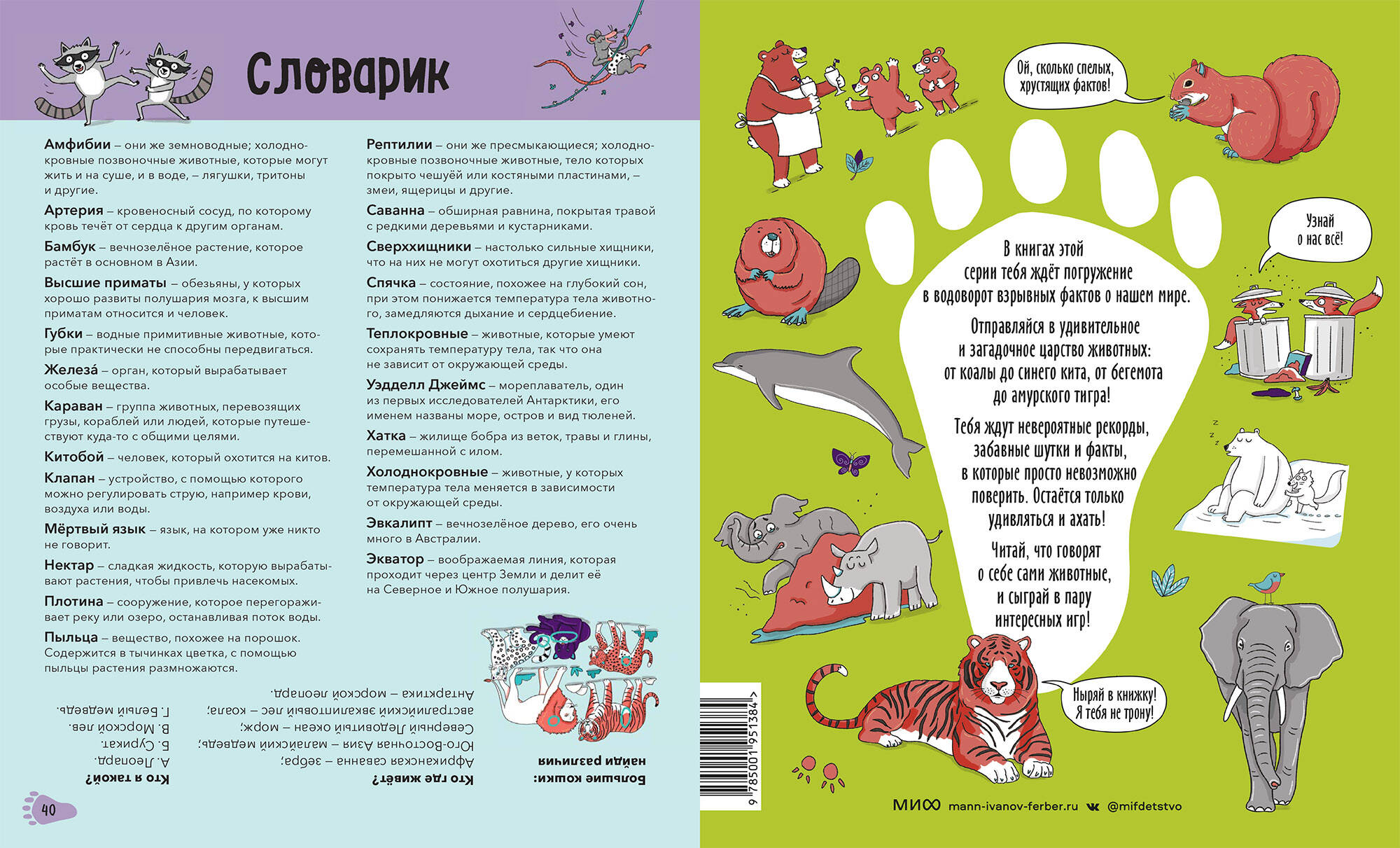 От коалы до синего кита, от бегемота до амурского тигра. Познакомит с удивительным и загадочным царством зверей. Смешные иллюстрации и остроумные тексты.| Издательство | Манн, Иванов и Фербер |