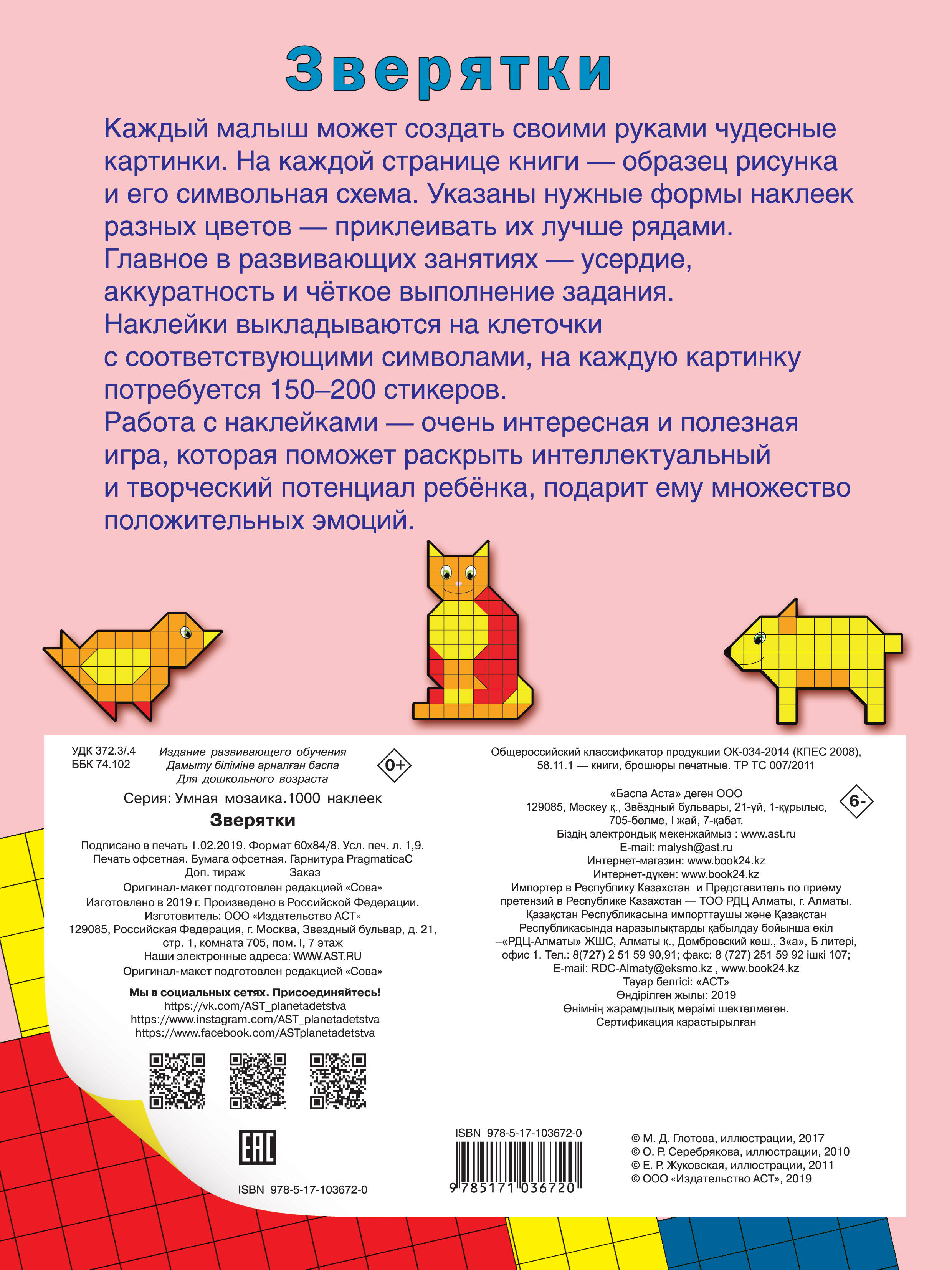 Впервые на книжном рынке уникальная серия - «Умная раскраска». Книга, которую вы держите в руках, - занимательная, полезная игра с наклейками и одновременно развивающая раскраска. Более 1000 геометрических наклеек плюс книга пиксельных картинок по клеточкам для юных художников и настоящих фантазеров. - Творческие уроки тренируют мелкую моторику, развивают образное мышление и воображение, сообразительность и логику. - Игры с наклейками и раскрашивание по пикселям развивает личностные качества - старательность, усердие и аккуратность. - Книжка помогает раскрыть творческий потенциал ребенка, дарит ему множество положительных эмоций.| Издательство | ИЗДАТЕЛЬСТВО "АСТ" |